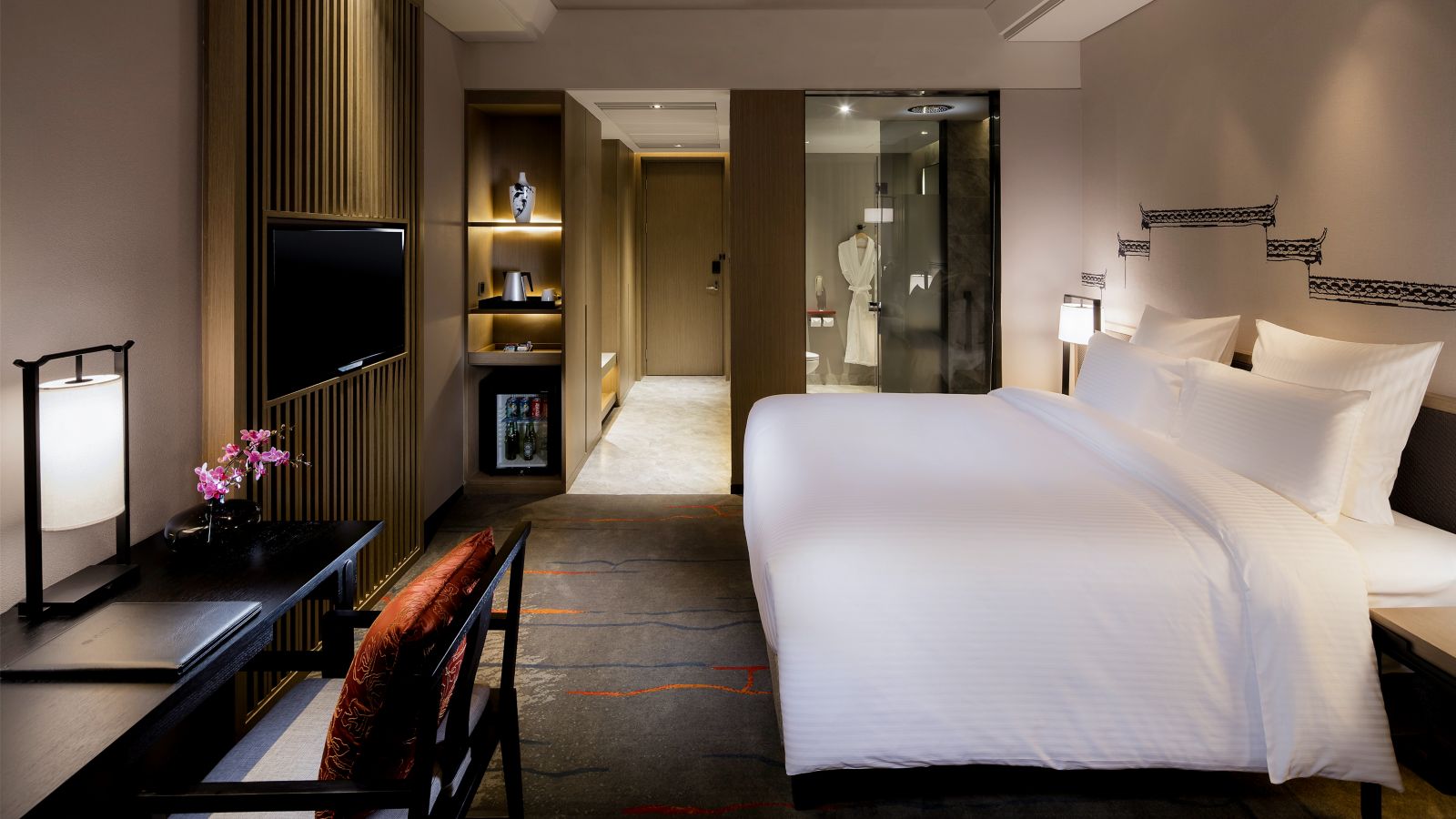 Unsere 404 Zimmer und Suiten sind eine Hommage an die Kultur von Anhui und die modernen Pullman Betten garantieren einen erholsamen Aufenthalt.