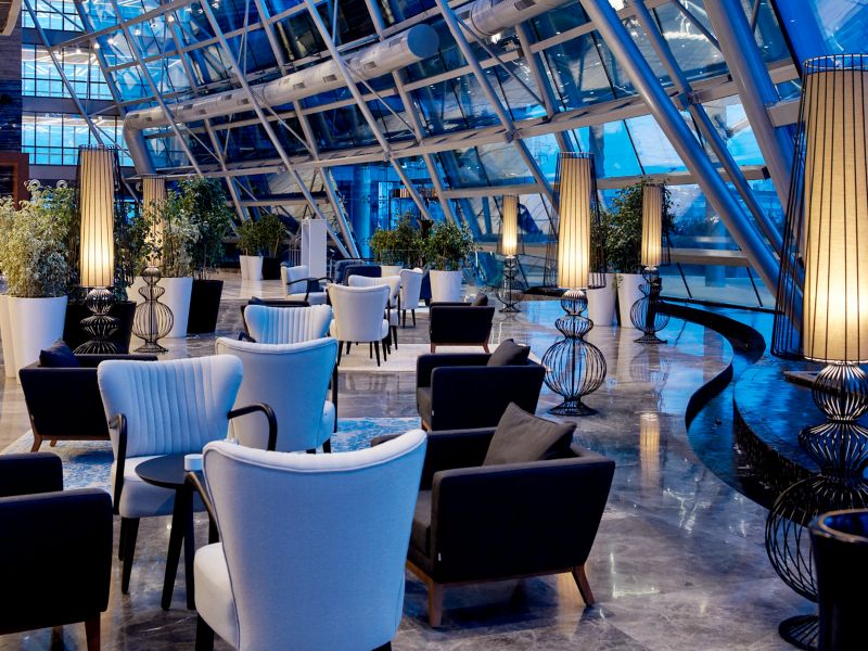 Die Pullman Istanbul Yesilkoy Hotel Bar bietet eine große Auswahl an alkoholischen und alkoholfreien Getränken in einer stilvollen Umgebung.