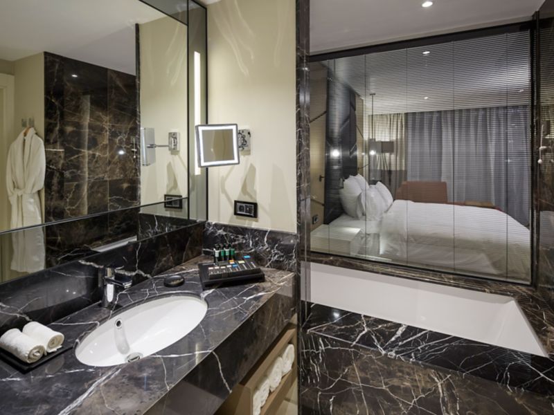 32 M² / 344 SQF Room with shower or bathtube, work desk, free WIFI, satellite TV, laptop-size safe, minibar. Non-smoking rooms available upon request.