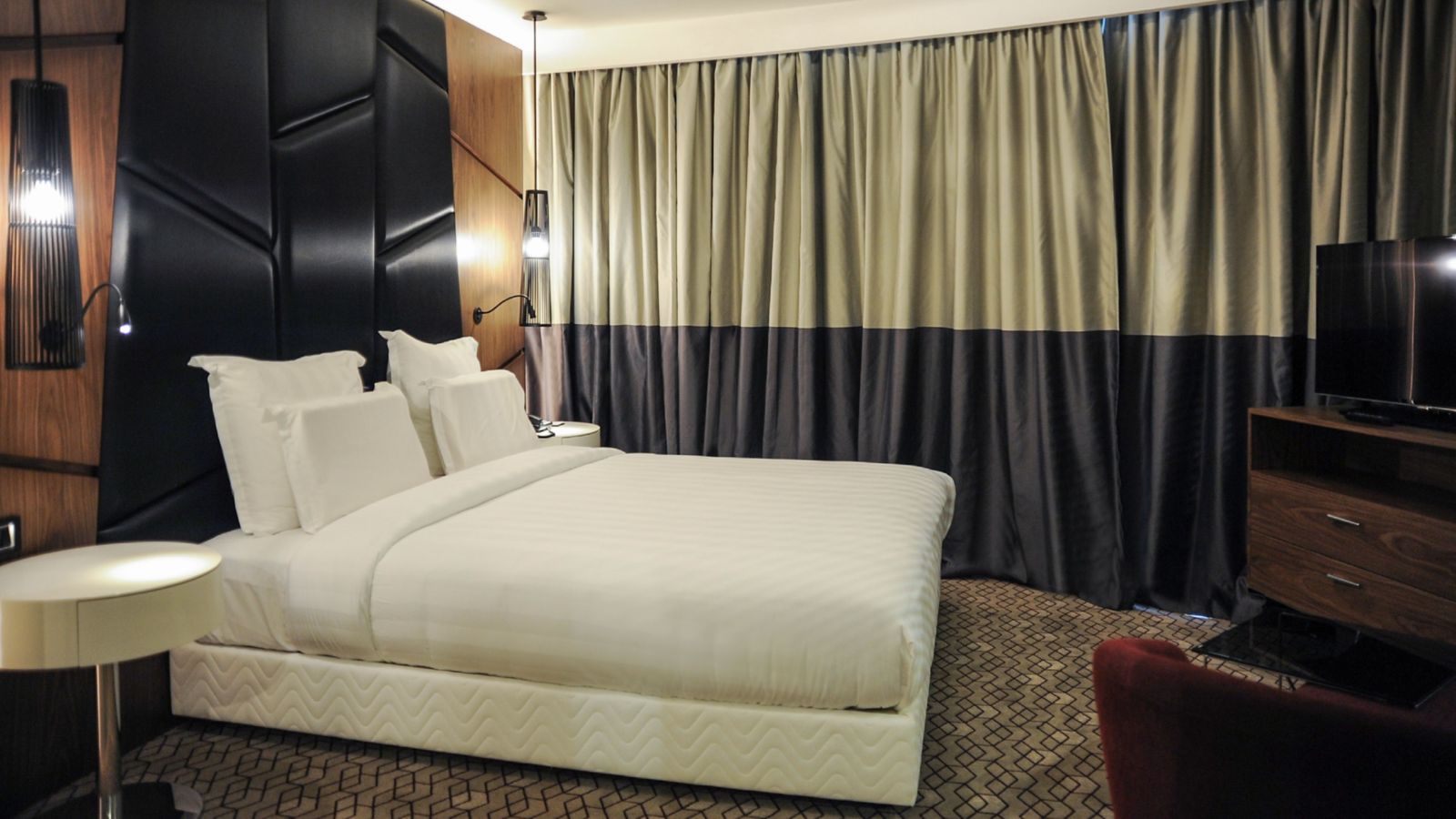 130 M² / 1399 SQF Room equipped with 1 bedroom and 1 bathroom with bathtube, kitchenette, spacious working desk, free WIFI, satellite TV, laptop-size safe, minibar, sitting area, access to executive lounge. Non-smoking rooms available upon request.