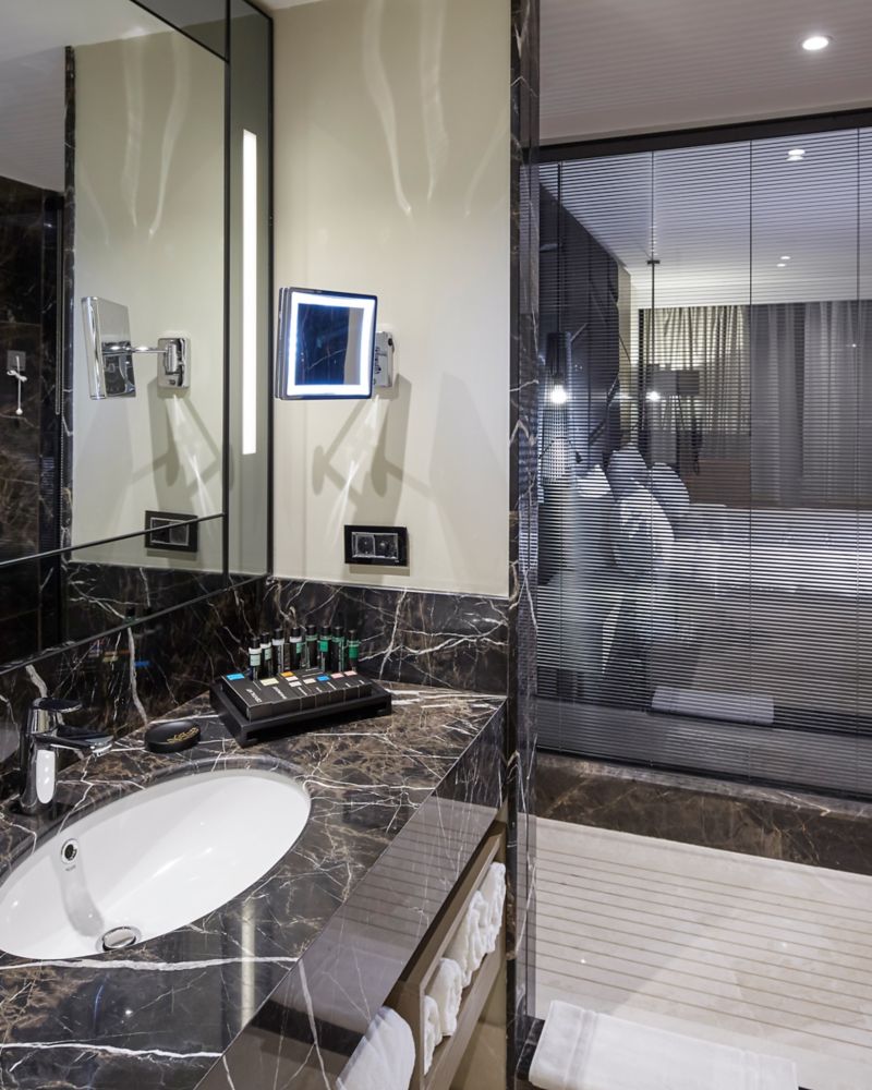 45 M² / 484 SQF Room, free WIFI internet access, spacious working desk, 40 inch LCD TV, mini bar, shower or bathtube, laptop-size safe, access to executive lounge. Non-smoking rooms available upon request