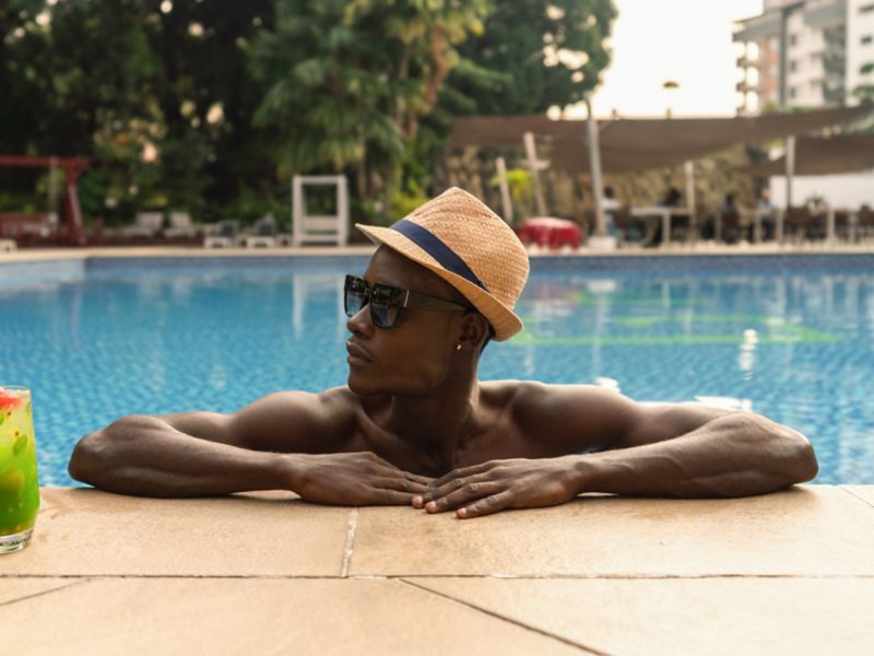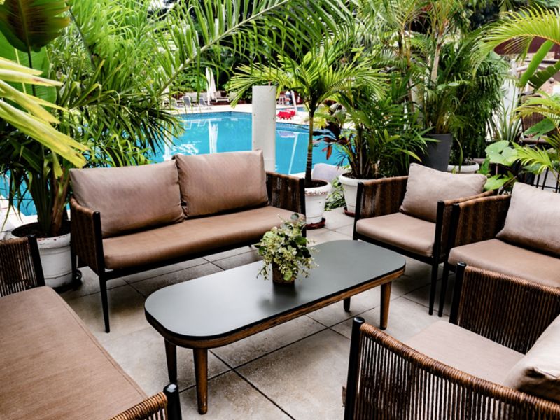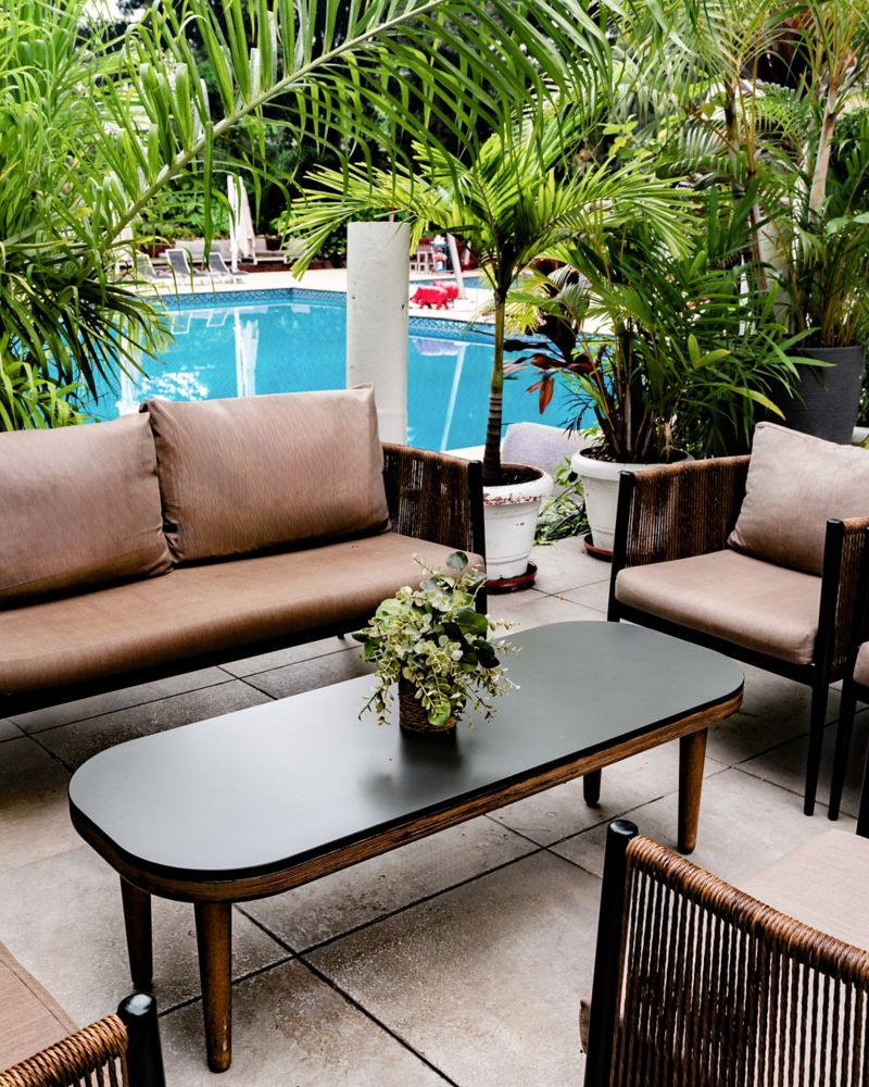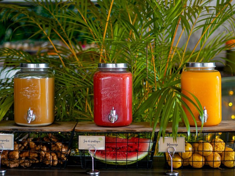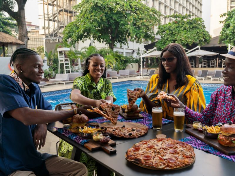Genießen Sie am Pool oder in unseren Strohhütten, die von Gärten umgeben sind, Cocktails von der Bar, trendige Salate, Grillspieße und Pizza aus dem Holzofen.