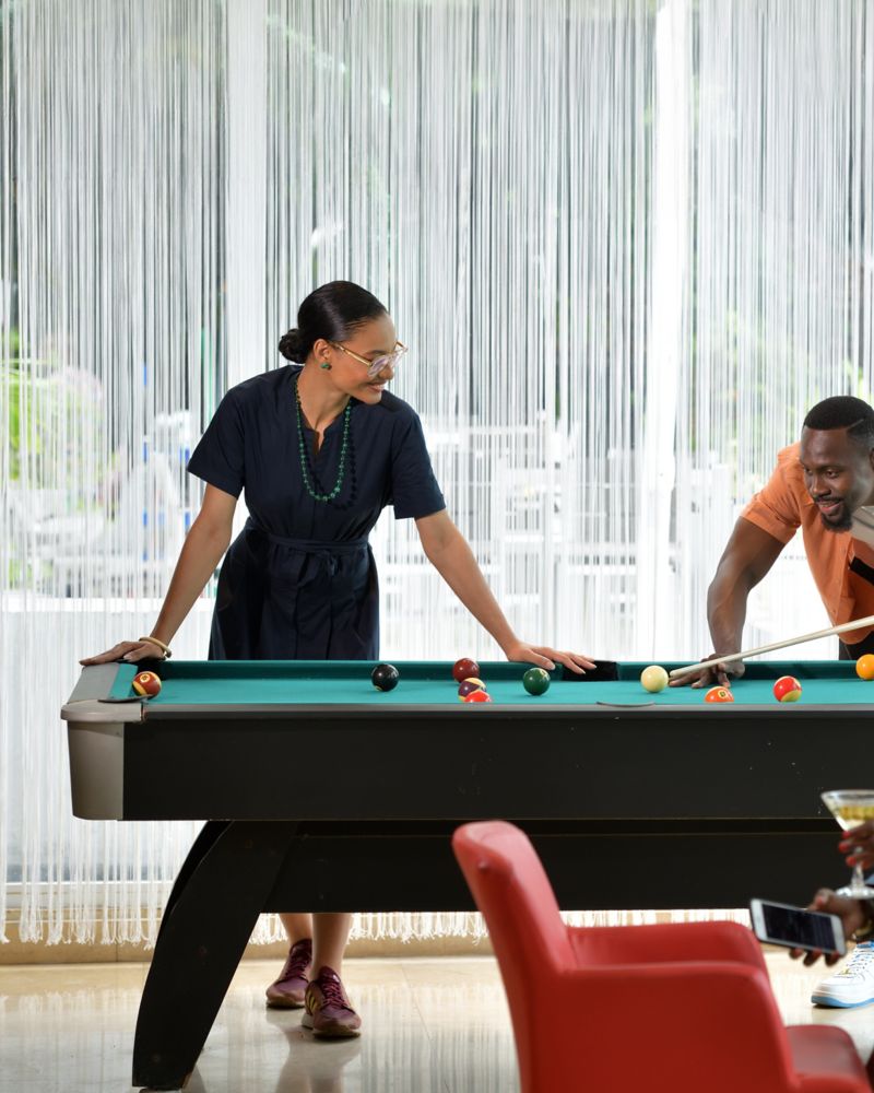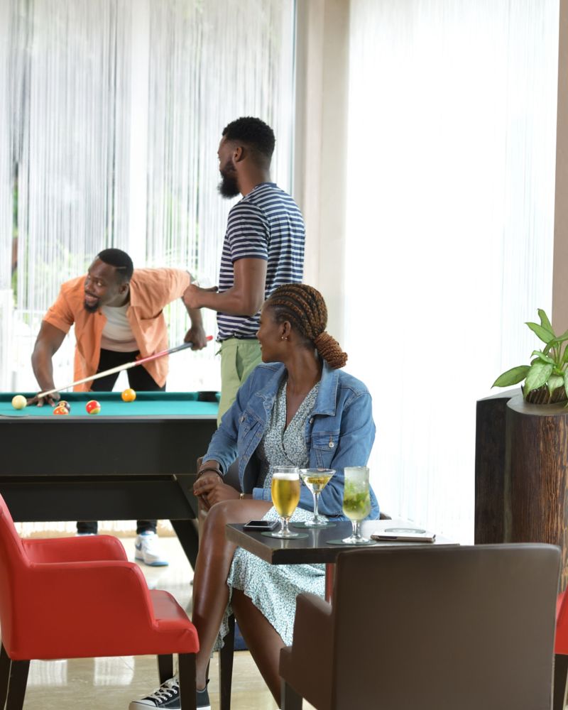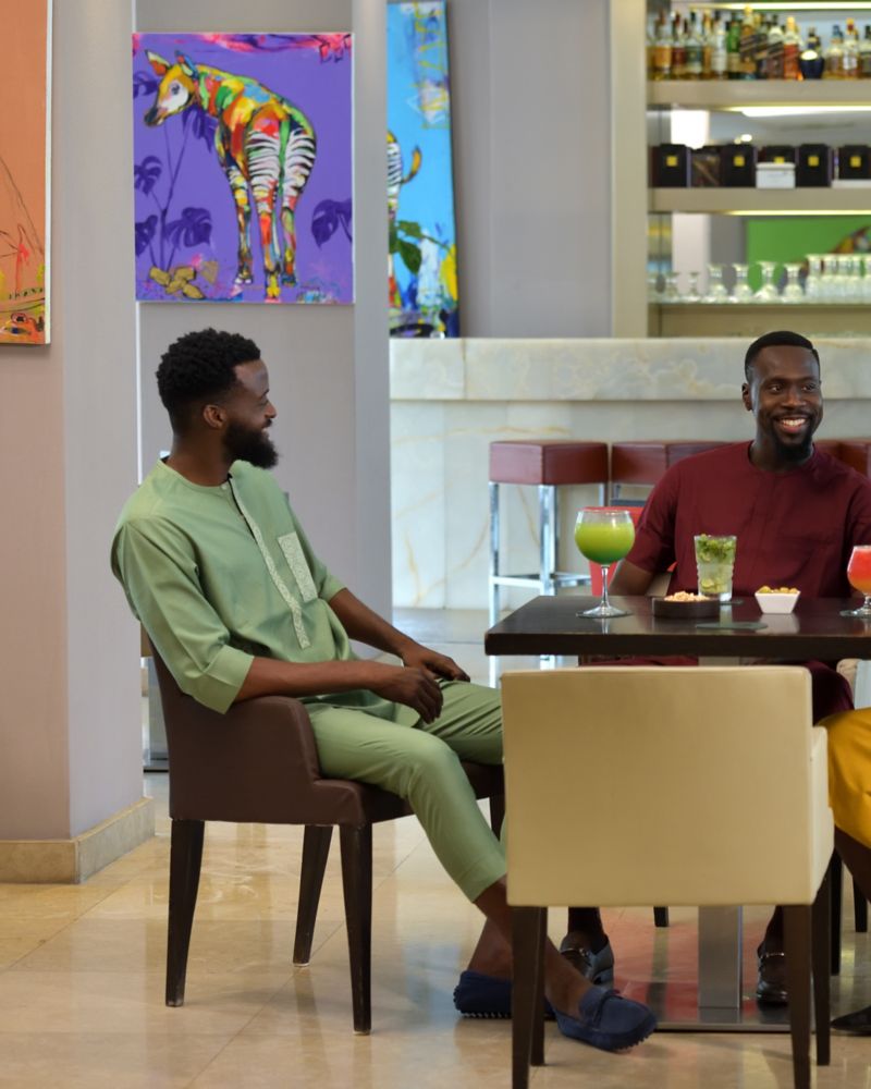 Erleben Sie in der Bar Bomengo eine legere und zugleich lebendige Atmosphäre, in der Tageslicht das Interieur aus rotem und cremefarbenem Leder perfekt ergänzt. Chefkoch Blaise Mateta kreiert Gerichte, die einfache Begegnungen in unvergessliche Erlebnisse verwandeln – perfekt für ein Geschäftstreffen oder einen entspannten Abend.