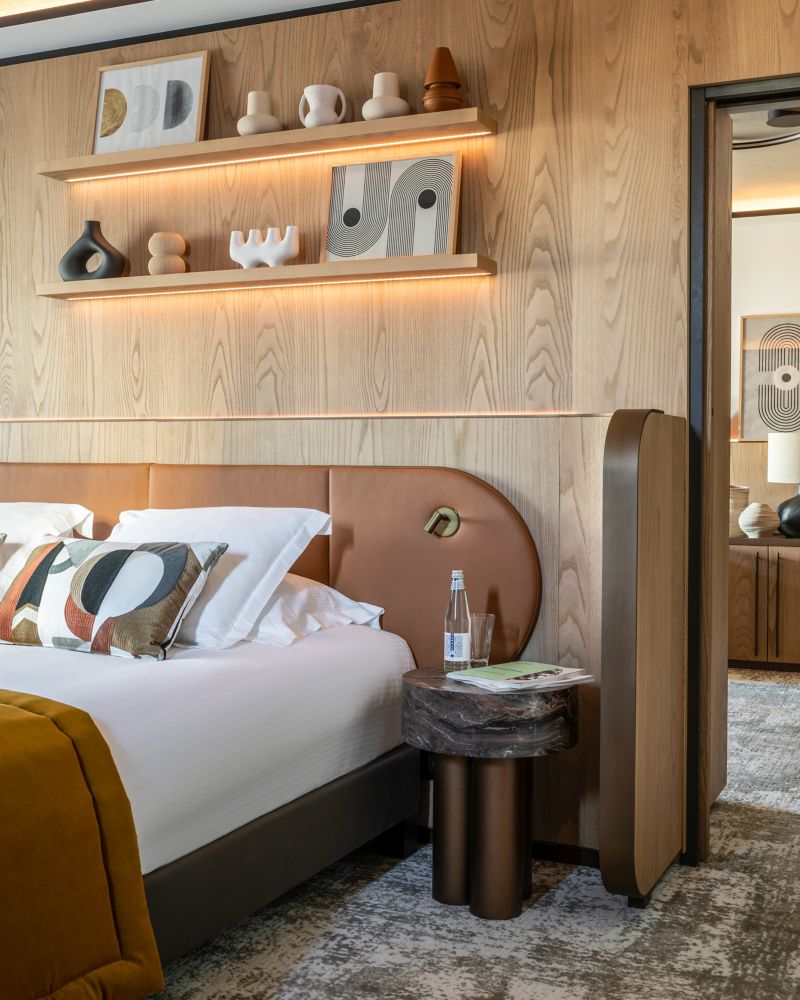 Entdecken Sie eleganten Komfort unserer stilvollen und geräumigen Zimmer, mit holzgefertigten und rohen Materialien und warmen organischen Noten für ein authentisches Gefühl von Ruhe.