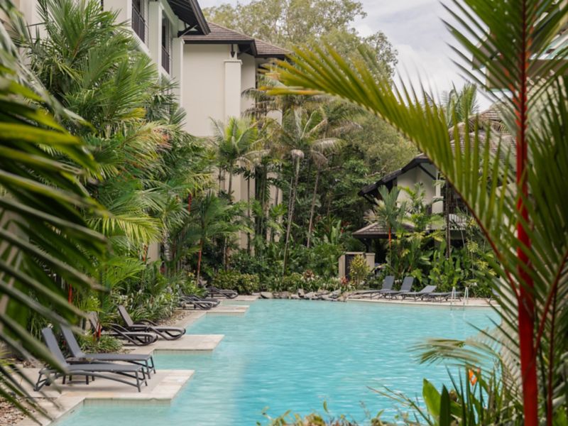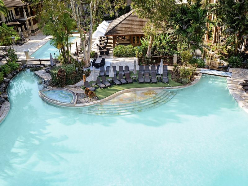 Der 30 Autominuten entfernte Flughafen Cairns bietet Taxi- und Shuttle-Optionen direkt zu unserem Hotel.