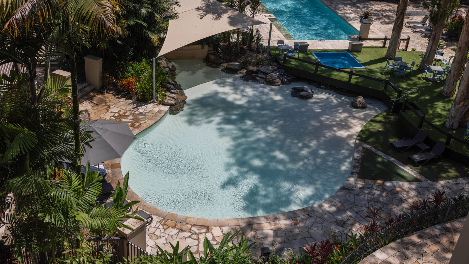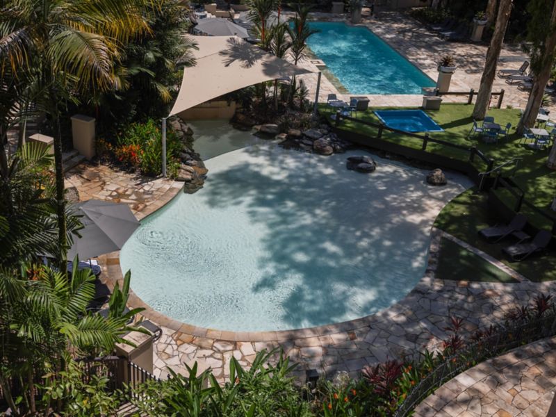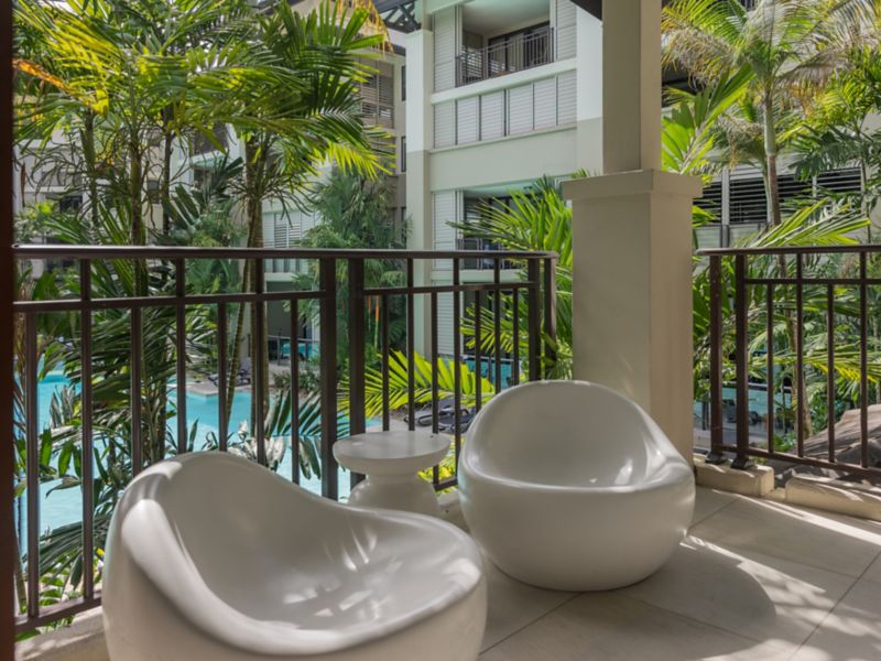 Appartement mit zwei Schlafzimmern und Zugang zu einem privaten Innenhof mit komplett eingezäuntem Pool und Sitzbereich. Die Zimmer liegen abseits der großen Lagunenbereiche und bieten so Ruhe und Privatsphäre.