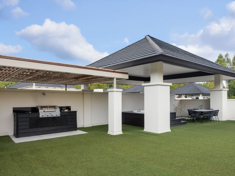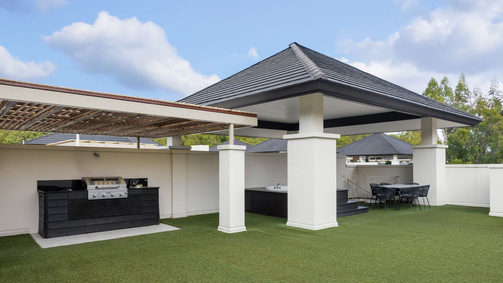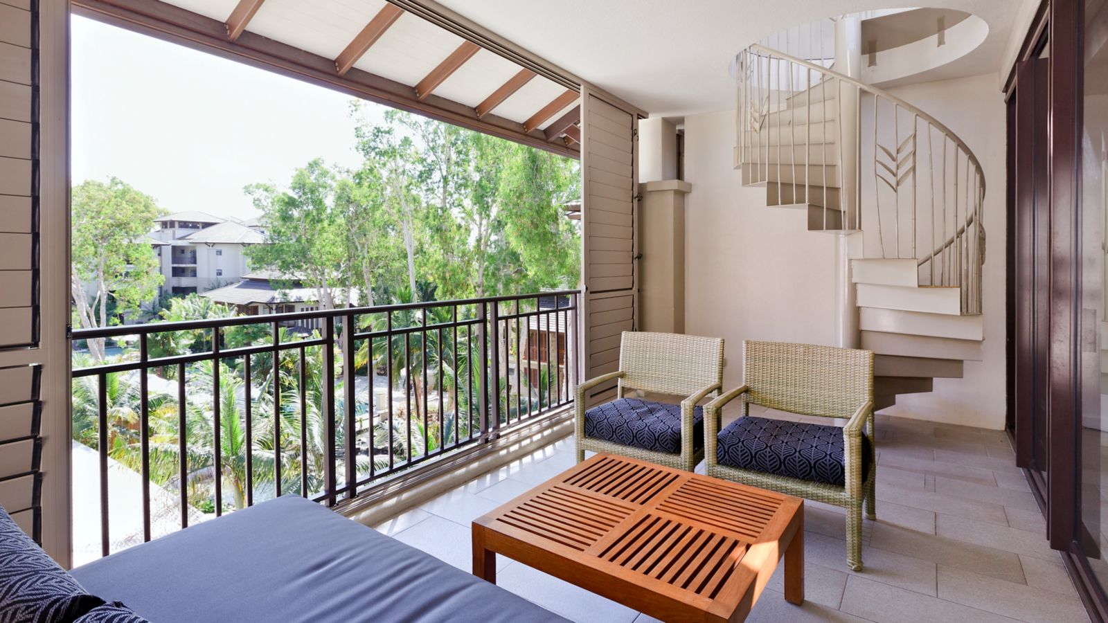 Luxuriöses Appartement mit einem Schlafzimmer mit Wendeltreppe, Zugang zu einem privaten Dachbereich mit Spa- und BBQ-Ausstattung und Außenbereich. Möbliert mit separater Lounge, Küche, Ess- und Schlafzimmer mit eigenem Bad.