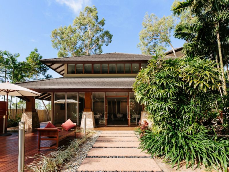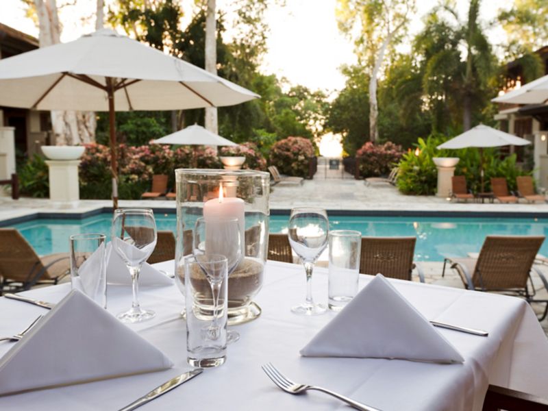 Das informelle und entspannte Palm Cove Restaurant "Temple of Tastes" serviert elegante Gerichte in modernem, schlicht, aber dennoch raffiniert gehaltenem Ambiente im Innenbereich oder auf der Terrasse.