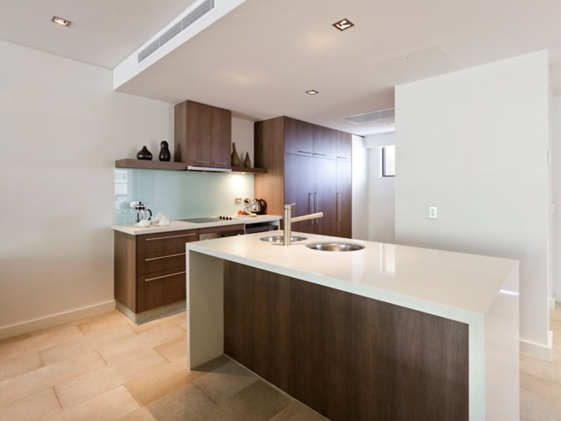 Geräumige Appartements mit einem Schlafzimmer und eigenem möbliertem Balkon. Es verfügt über ein Kingsize-Bett, eine voll ausgestattete Küche, eine Lounge und einen Essbereich mit Geschirrspüler und Waschküche.