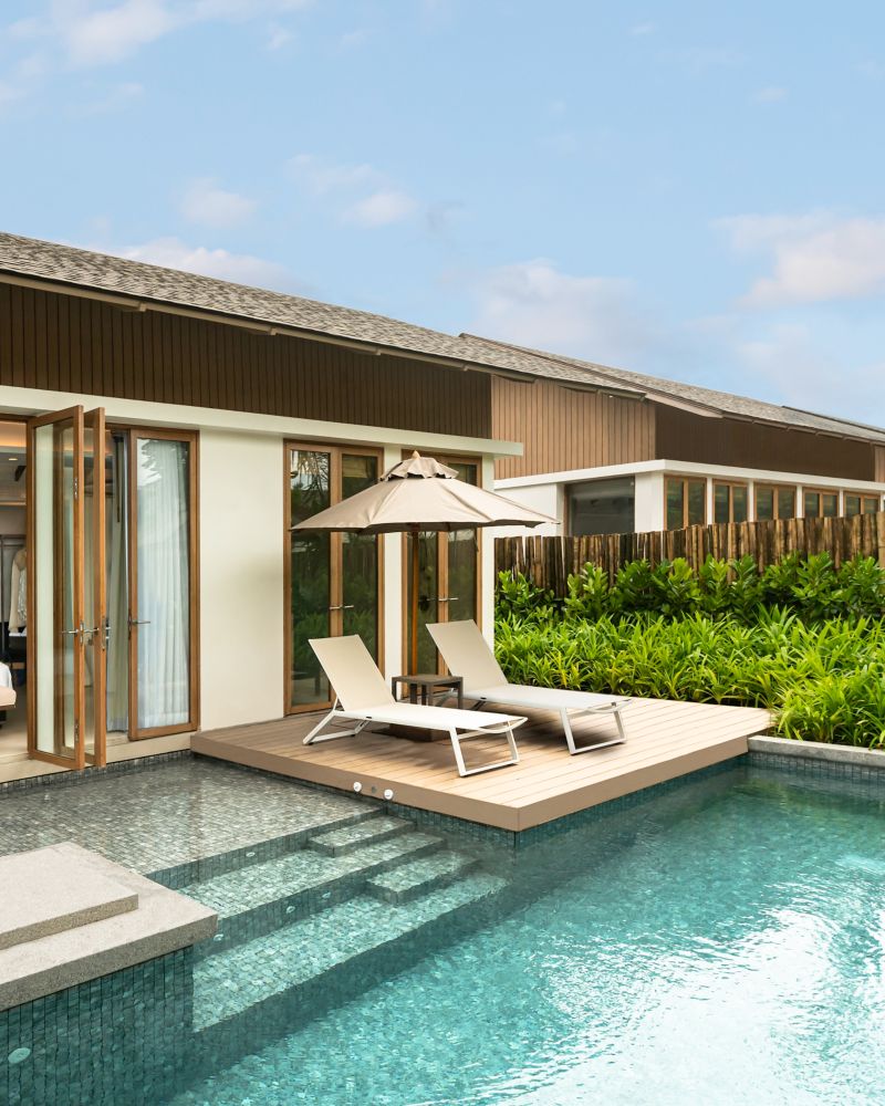 Die Luxus-Pool-Villa mit einem Schlafzimmer und ihrem 41 m² großen Tauchbecken ist ein privater Rückzugsort, an dem Kreativität und Entspannung verschmelzen. Tauchen Sie ein in einen lebendigen Ort, der zum Entspannen und zur Inspiration einlädt – nur wenige Schritte vom Meer entfernt.