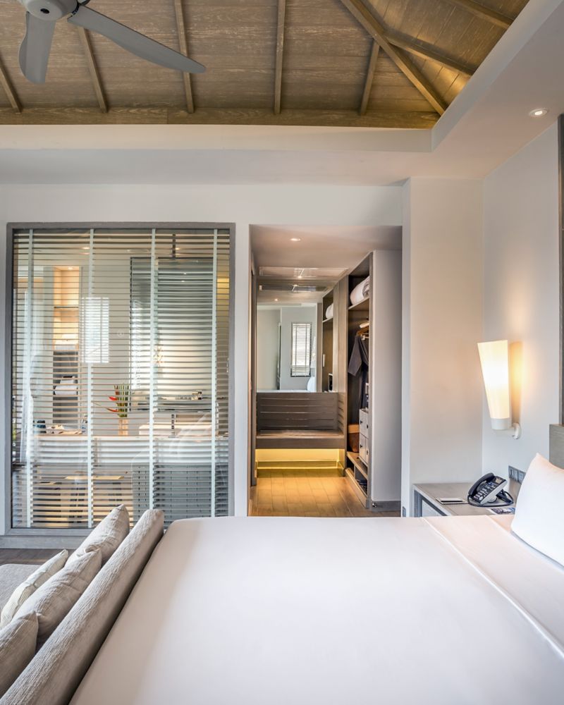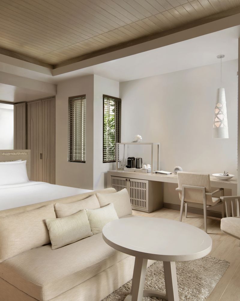 Großes 55 m²-Zimmer mit Blick auf die Andamanensee inklusive Balkon, WLAN, LED-TV, Bluetooth-Soundbar, Espressomaschine, Minibar, JBL-Lautsprecher, Abend-Turndown-Service, sep. Bad und Regendusche. Nur Kingsize-Bett. Max. 2 Erw. und 1 Kind.