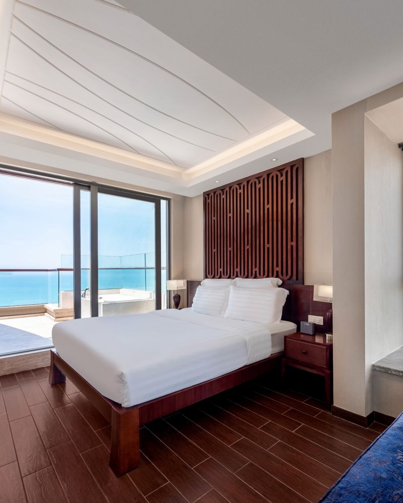 45 m², Etage 5-6, Meerblick, Balkon, moderner Südostasien- und klassischer chinesischer Stil. Kostenloses WIFI und Hochgeschwindigkeits-Internet, 42-Zoll-LCD-TV, Kaffee-/Teezubereiter, separate Regendusche, Badewanne. Zimmer mit Twin-Betten auf Anfrage.