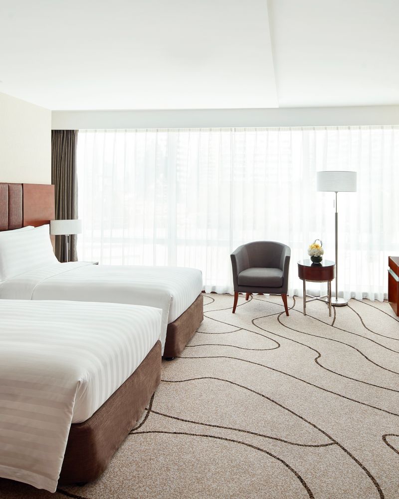 Entdecken Sie das Superior Zimmer mit Twin-Betten – ein Ort, an dem Erholung und Kreativität nahtlos verschmelzen. Genießen Sie 23 m² (247 sqft) durchdacht designten Raum mit intuitiver Technologie und inspirierender Aussicht – perfekt für kreative Pausen und Momente des Innehaltens.
