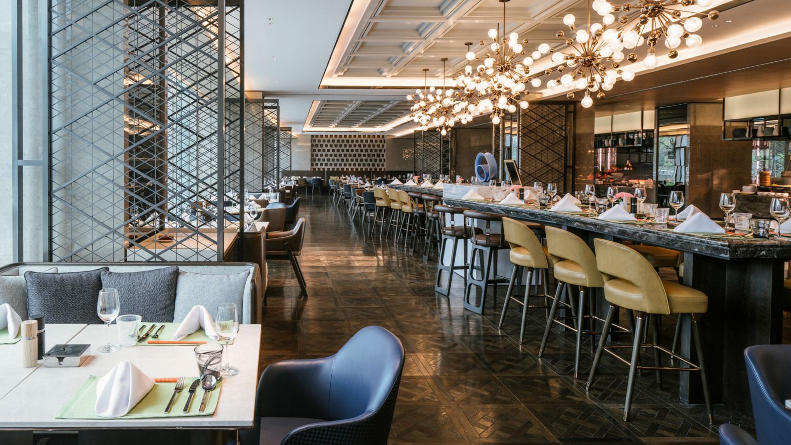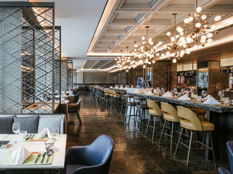 Unsere Küchenchefs bereiten für Sie westliche, asiatische und chinesische Köstlichkeiten zu. Zur authentischen französischen Patisserie, Brot und feinem Käse gibt es natürlich hervorragende Weine. Das Ganztagesrestaurant hat 160 Sitzplätze.
