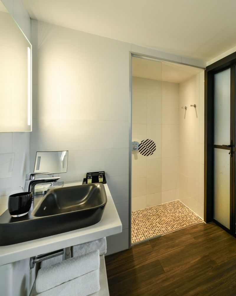 613 sq. ft. (57 m2), contemporary, lounge with sofa bed, WiFi connection, LCD satellite TVs, safe, minibar, tea and coffee making facilities, Illy coffee machine, separate toilet, hair dryer, air conditioning, bathtub and shower.