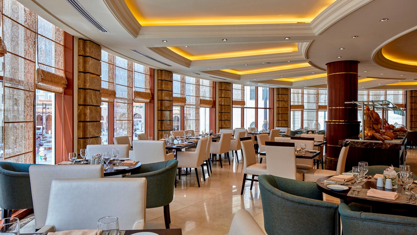 A rooftop offering an International gastronomy experience, with an all-day buffet, a rich menu of Mediterranean & Asian culinary delights, Les Grands Classiques des Braserries Françaises... Enjoy a blissful panoramic view of the grandiose Prophet Mosque.