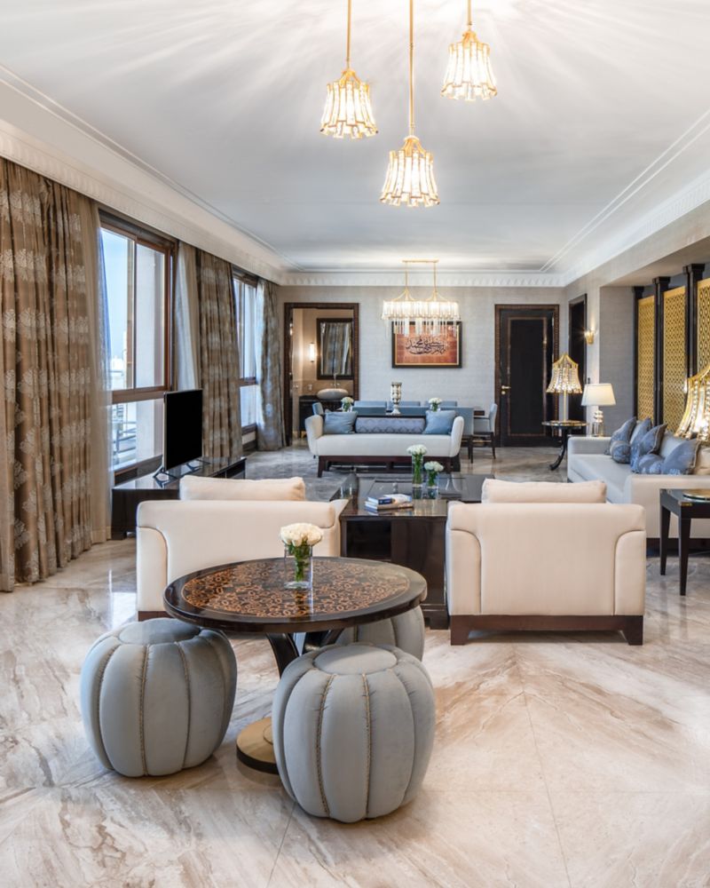 The Royal Suite, spanning 200 sqm (2,152 sqft), merges timeless elegance with modern innovation. This suite offers a panoramic view that inspires, complemented by a suite of intuitive technologies and thoughtful amenities, ensuring every moment is imbued with creativity and comfort.