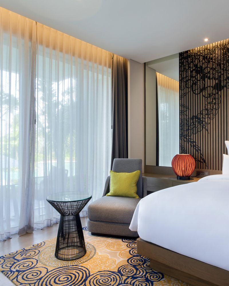 Enjoy a 42 m² Deluxe Room at our premium-scale resort with pool or garden views, a king-size bed, large balcony, 55″ Smart TV, Wi-Fi, coffee and tea facilities, and a calming rain shower.