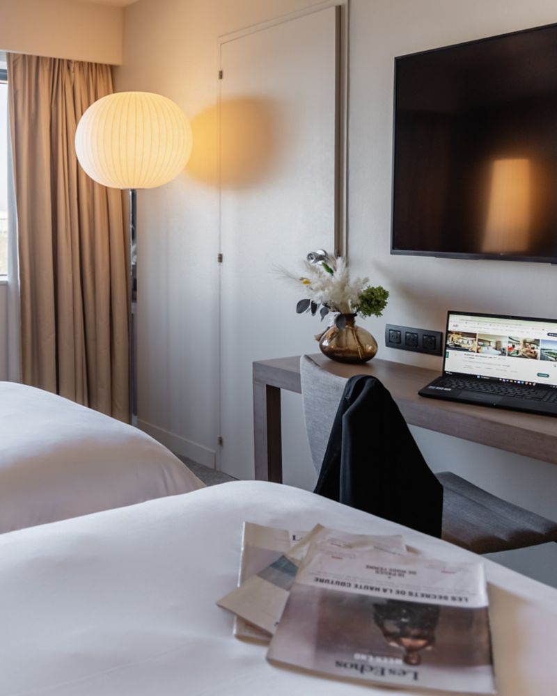 Comfortable and bright room measuring 301 sq. ft. (28 m²). Stylish and understated decor. Free WIFI. Tea and coffee making facilities, Nespresso, TV, minibar, safe and air conditioning. Bathroom with bathtub and/or shower.