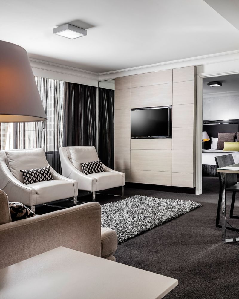 The One-Bedroom Spa Suite offers a seamless blend of rest and creativity across 62 sqm (667 sqft). Revel in the suite's spa bath and expansive city views, complemented by contemporary decor and modern amenities.