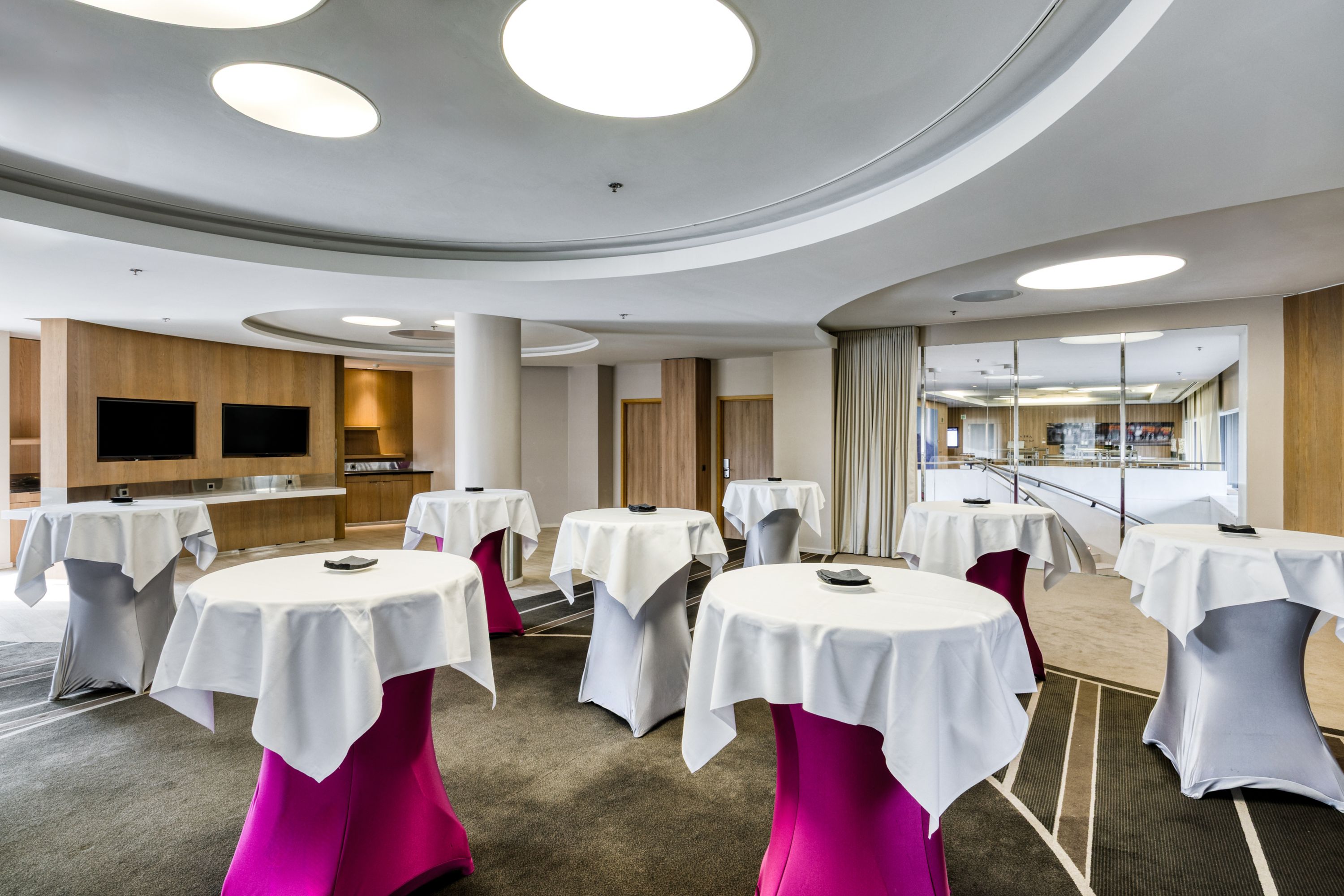 Rotonde offers a transformative space with its unique round design and integrated refreshment area. Perfect for cocktails, standing lunches, or seated dinners, it invites creativity and fluidity, making it ideal for presentations and breaks alike.