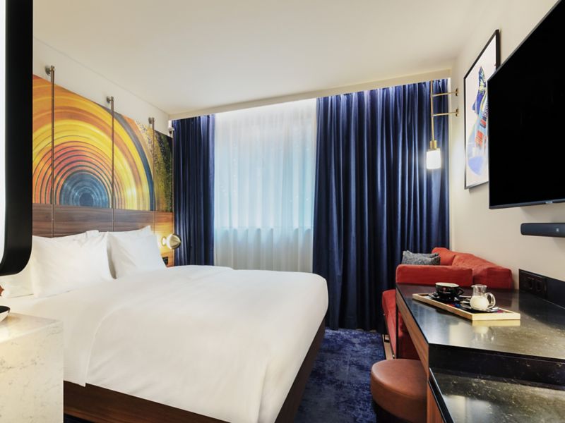 Opposite the Part-Dieu train station and at the foot of the To-Lyon tower, the Pullman Lyon is strategically located for your stays and events. Designed as a green oasis, the hotel, created by interior designer Fabien Roque, spans 8 floors and offers 168 rooms measuring at least 355 sq.ft. Discover the restaurant, bar, patio, fitness room, and 10,764 sq.ft. of space dedicated to professional and private events. Step through the doors of the Pullman Lyon and enjoy a moment of calm amid the bustling city.