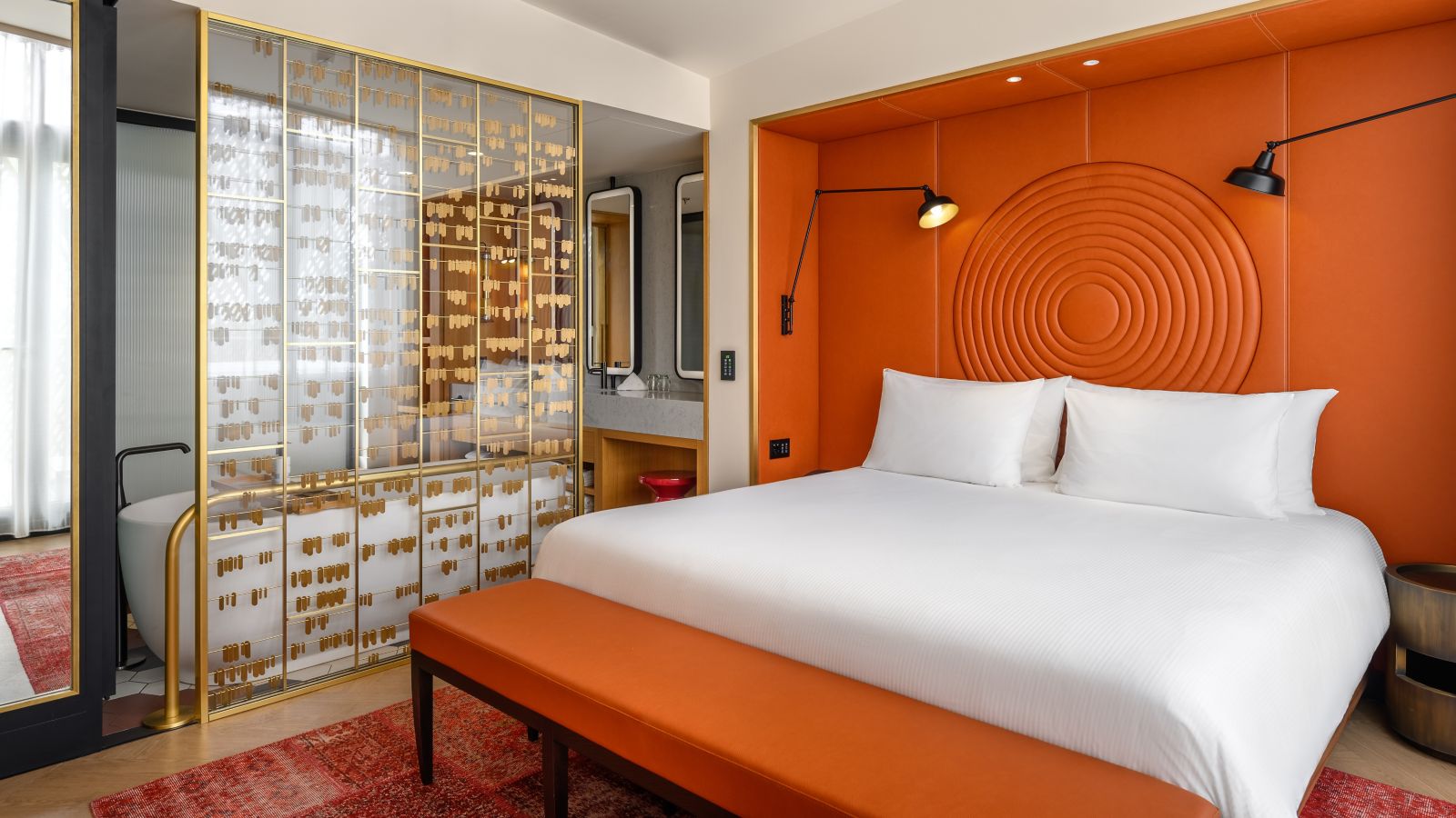 Stunning Signature suite with one super king size bed (200x200cm), a spacious living room and dining area, large private terrace (65m2), private jacuzzi, kitchenette, freestanding bathtub and walk-in shower, Chromecast TV, high quality amenities.
