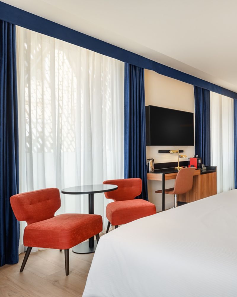 The Deluxe Junior Suite offers a seamless blend of rest and creativity across 35 sqm (377 sqft). Enjoy a meaningful pause with our Pullman Sleep Experience and invigorate your senses with intuitive technologies and thoughtful amenities.