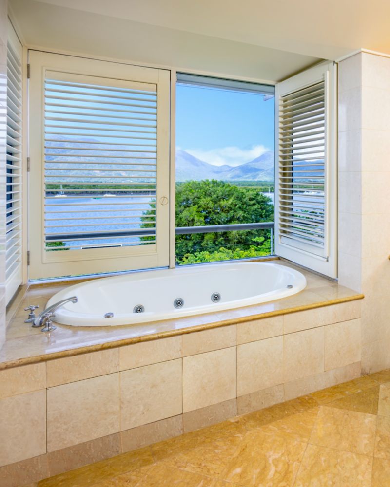 Appointed for comfort in warm, natural hues and all the modern conveniences you need. Our Superior twin rooms are spaciously appointed with 2 king single beds, single spa bath and private garden balcony overlooking Cairns city.