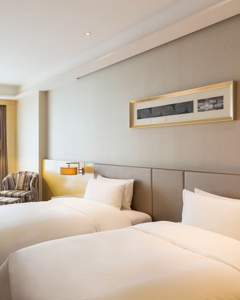 The Superior Room has twin beds with firm and soft pillows, toilet with bathtub and shower and wired and wireless high speed Internet access.