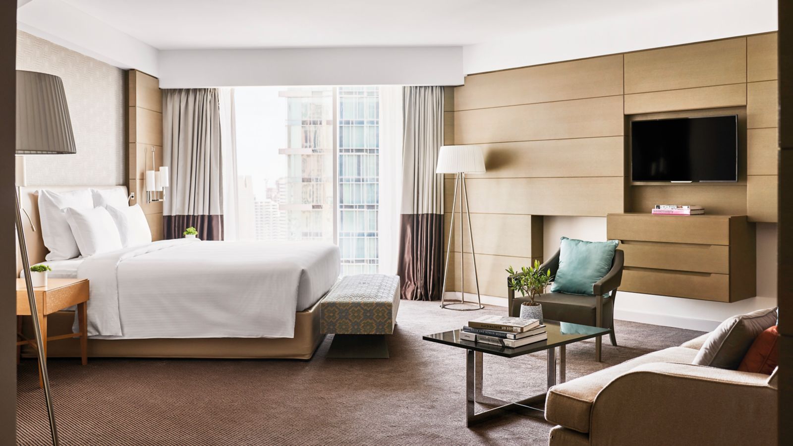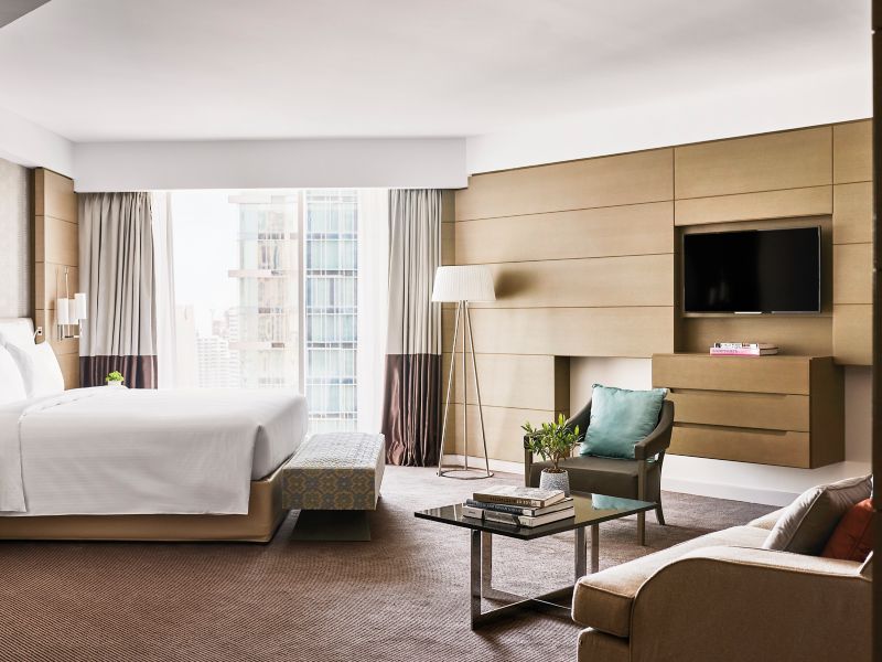 From 80-90m², these suites on upper floors exudes a stylish living & dining area, access to executive lounge, Wi-Fi, 40" TV, Chromecast, in-room safe, 24-hr room service, walk-in shower and tub, C.O Bigelow amenities, Nespresso and tea-maker.