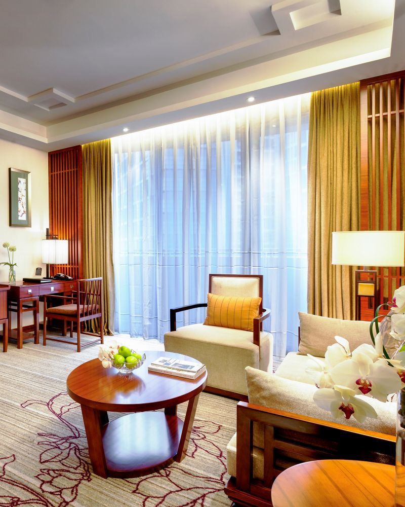 The Deluxe Suite offers a harmonious blend of comfort and creativity across 76 sqm (818 sqft). Immerse yourself in a space designed for deep rest and gentle productivity, featuring a private balcony with invigorating city views, intuitive technologies, and dual 42" LCD TVs.