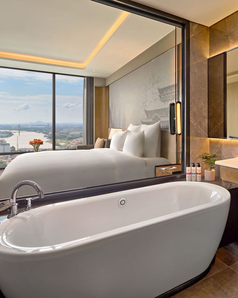 44.6 m² featuring Hai Phong city view, floor to ceiling window, private balcony. Pullman Signature bed, separate bathtub and walk-in shower, Japanese washlet toilet, Espresso machine, 55'' IPTV, work area, complimentary high-speed Wi-Fi.