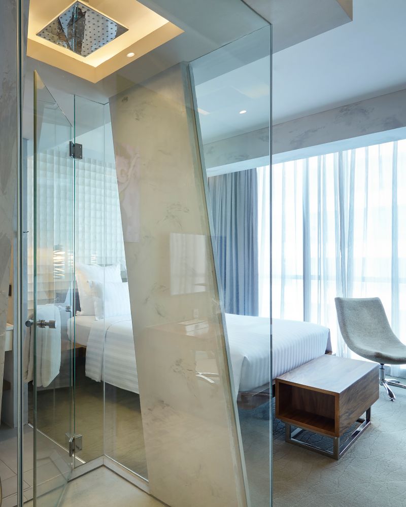 With a contemporary and intimate design, the 32 sqm room is furnished with an open-concept bathroom featuring a rain shower. Guests can enjoy amenities including an LED TV, internet access, and a laptop-sized in-room safe.