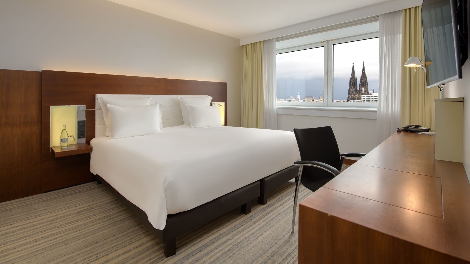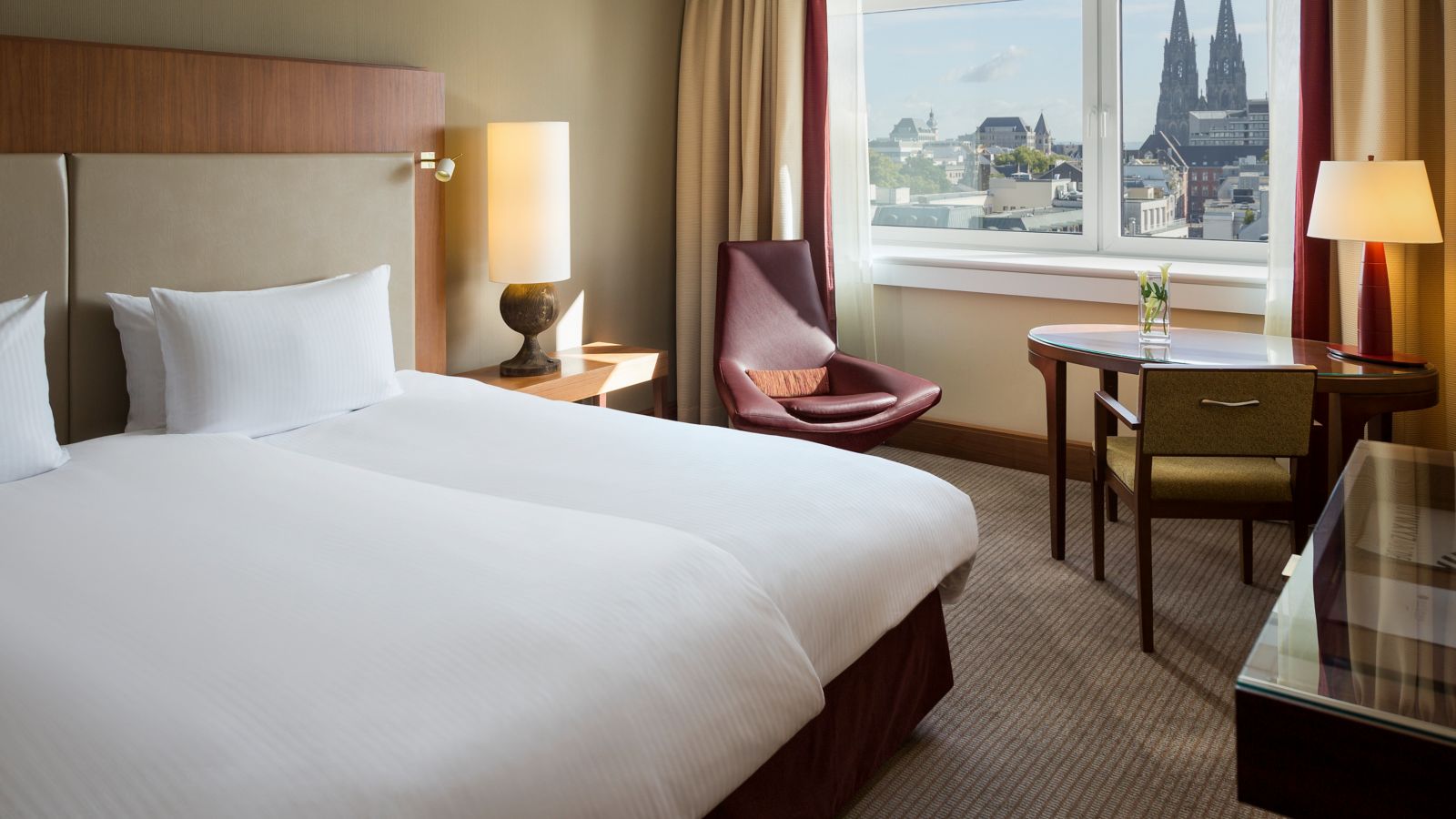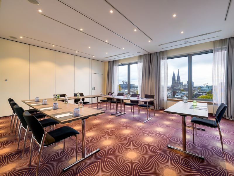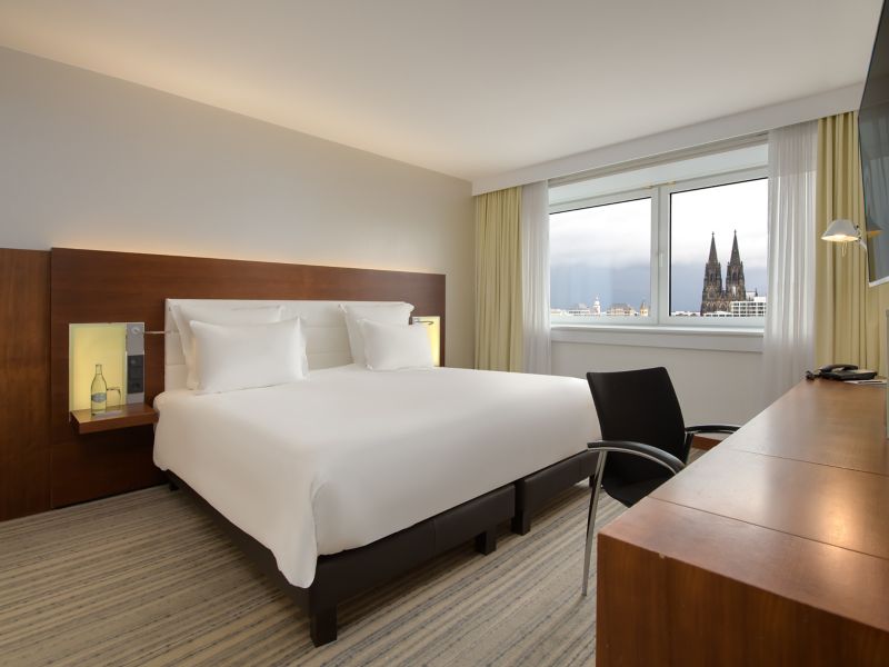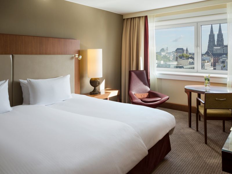 Select rooms offer views of Cologne Cathedral, blending iconic scenery with comfort.