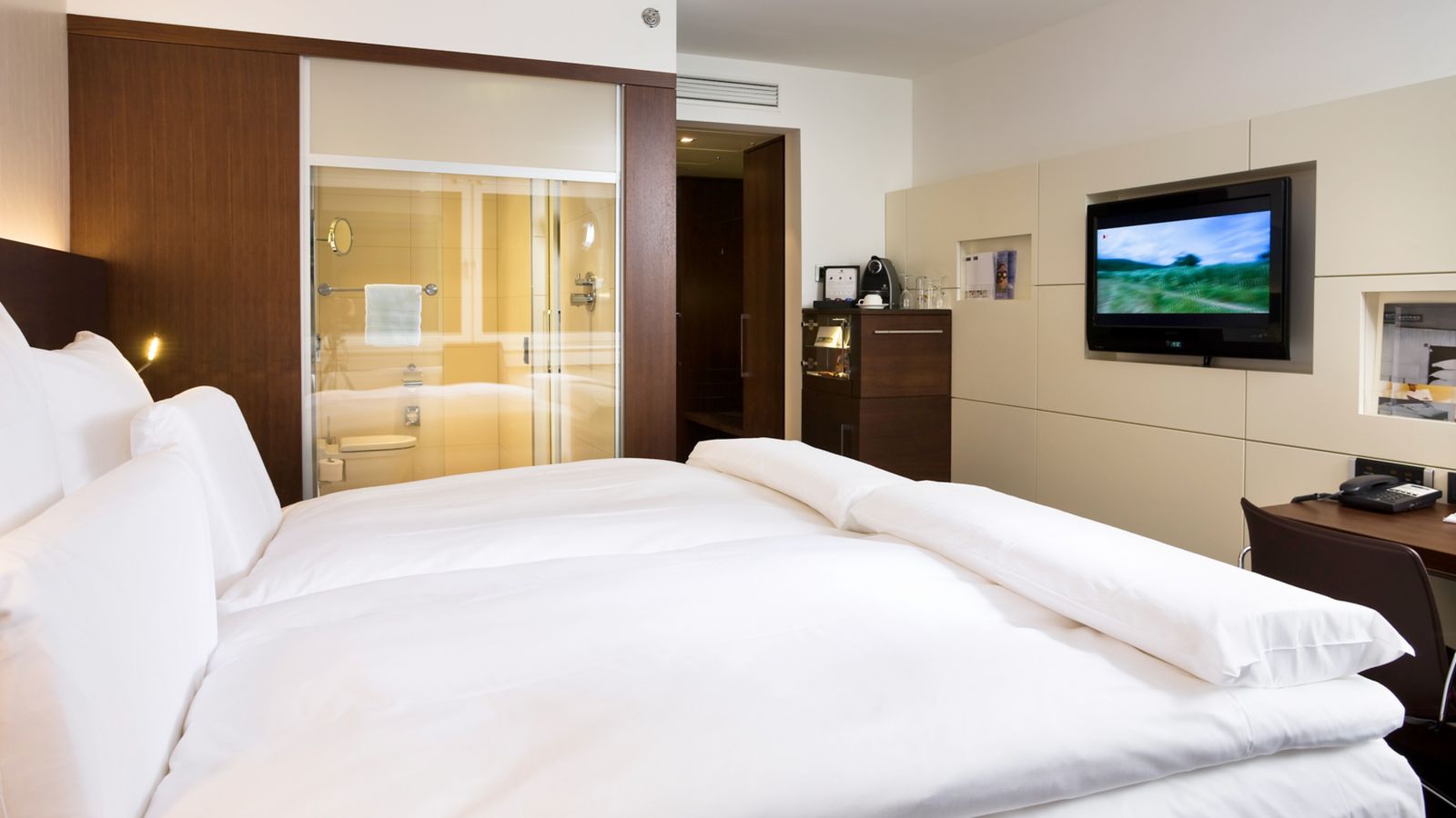 Check in and relax. Our deluxe rooms offer you even more benefits: king-size bed, free minibar, Nespresso machine and a large bathroom with wellness shower and natural light. The deluxe room is yours to enjoy until 3 pm on your day of departure.