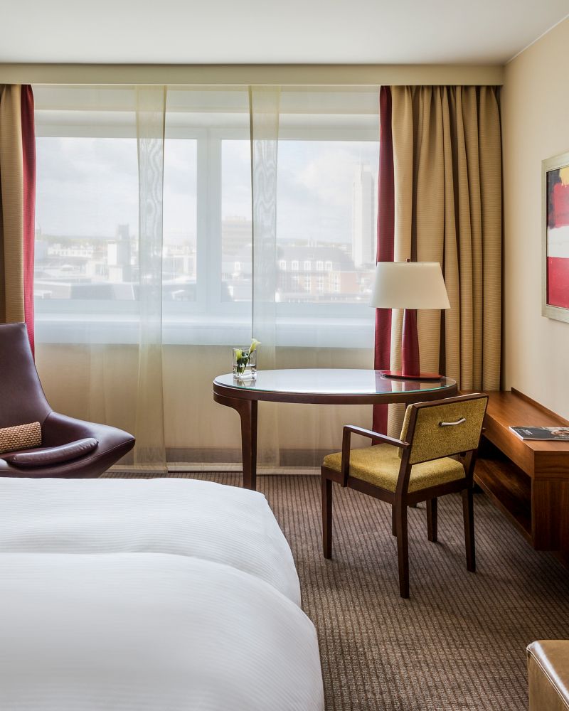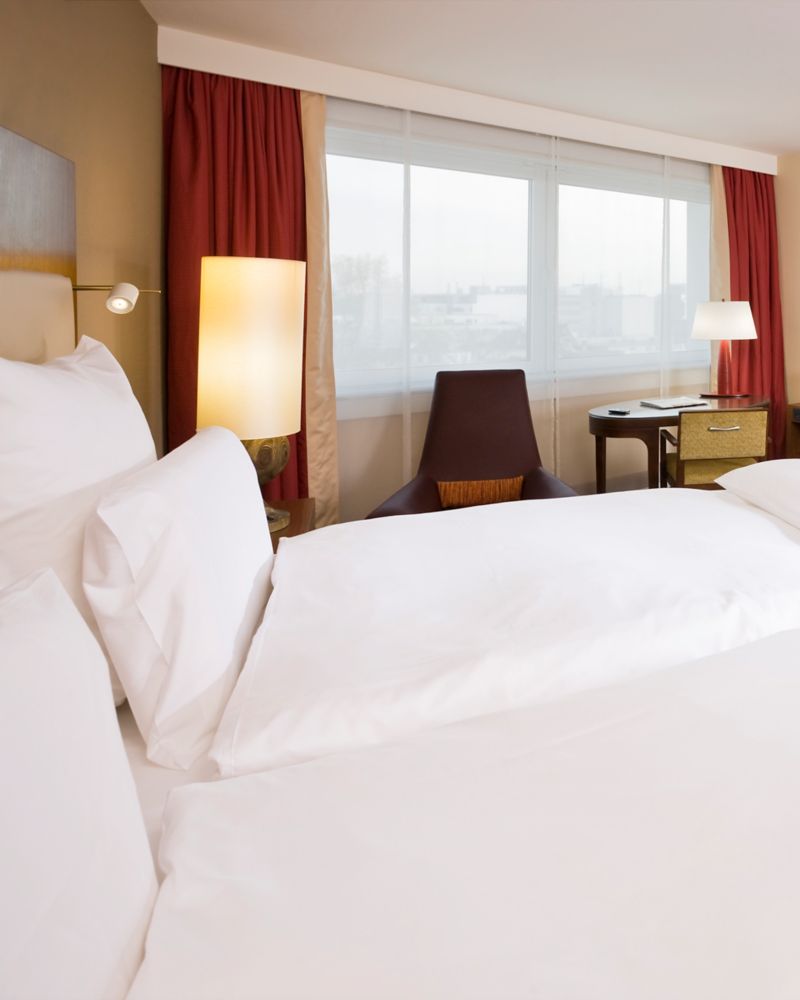 Enjoy a spacious room. An elegant bedroom and living area plus a luxurious bathroom give you a real sense of wellbeing. Extras such as a free minibar, Nespresso machine and bathrobes in the bathroom, not to mention a docking station, are available.