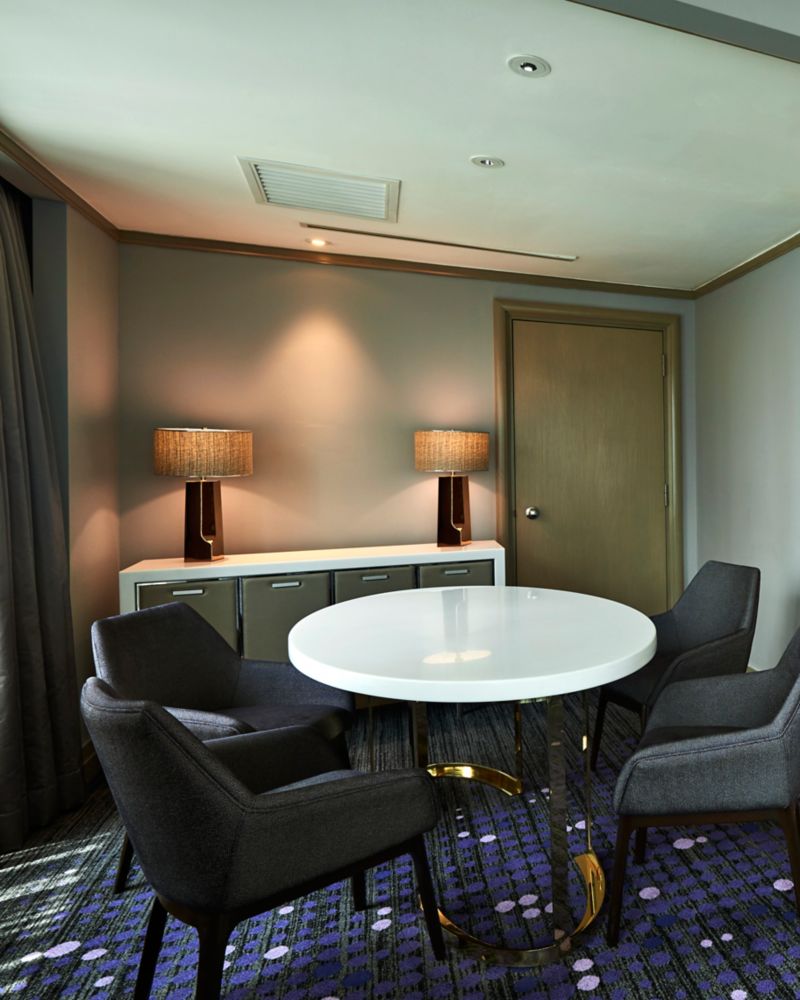 The Executive Suite, featuring Club Lounge Access and a king bed, offers a harmonious blend of rest and creativity within its expansive 107 sqm (1,152 sqft) space. Revel in the invigorating views and enjoy thoughtful amenities and intuitive technologies, including complimentary Wi-Fi and dual LCD TVs. This corner suite is your refreshing haven for both relaxation and focus.