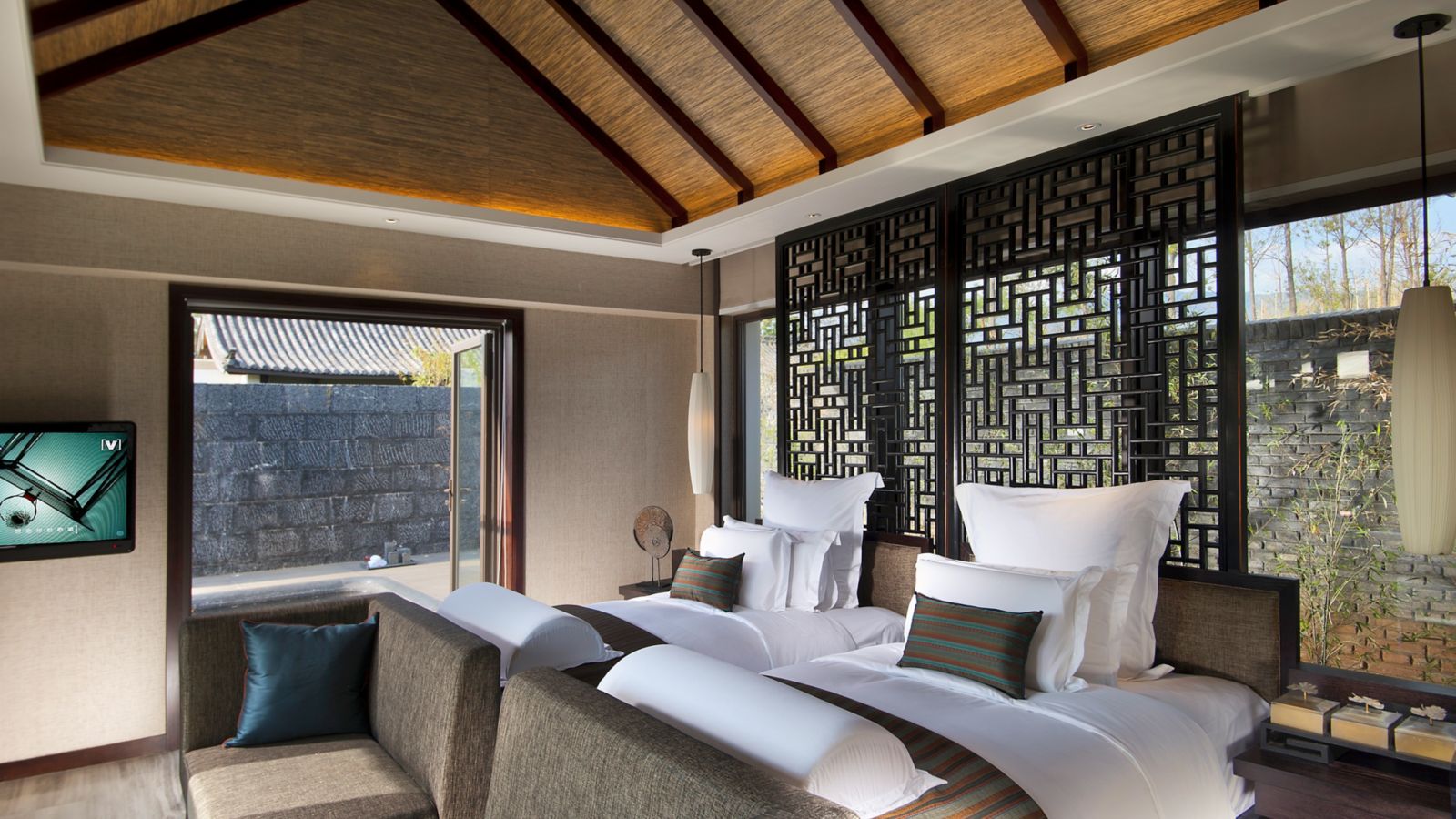 Enjoy the beauty of nature in your private villa with garden and outdoor heated soak tub. With floor heating, the 358sqm villa is equipped with LCD TVs, espresso machine, ipod dock, hi-fi system and complimentary internet.