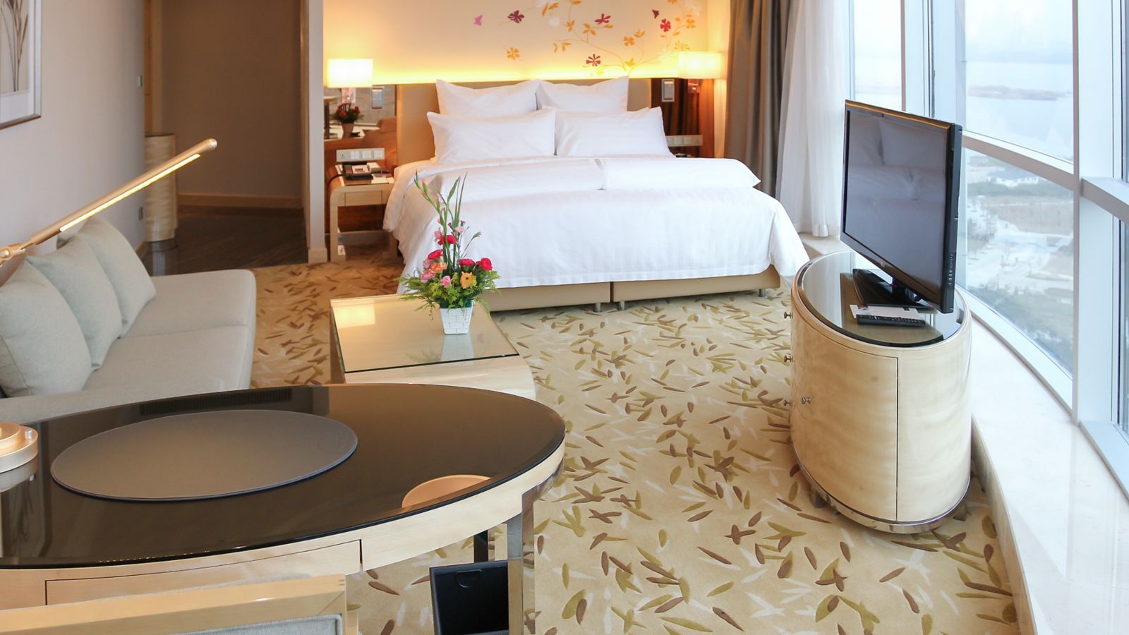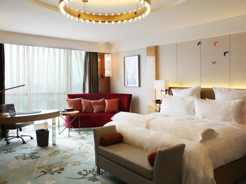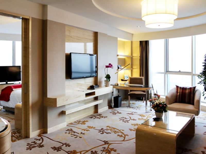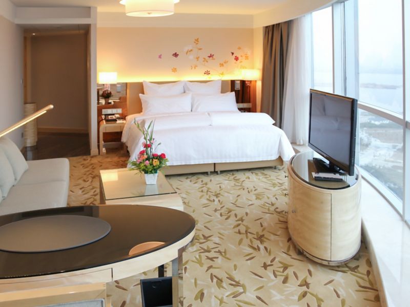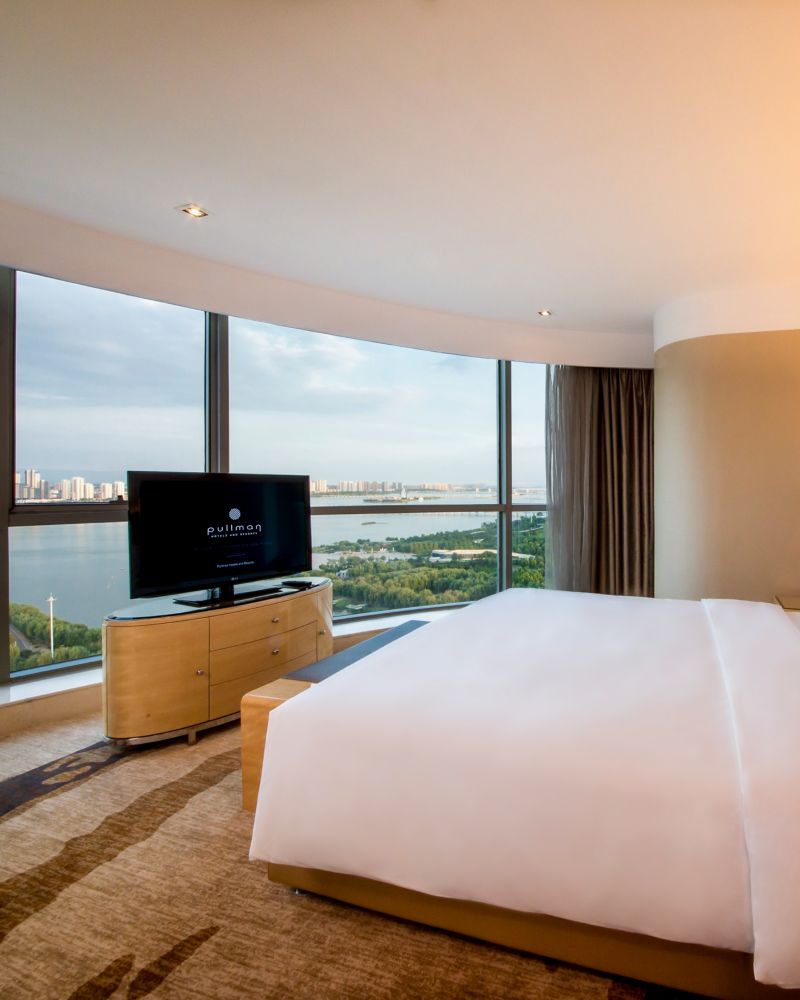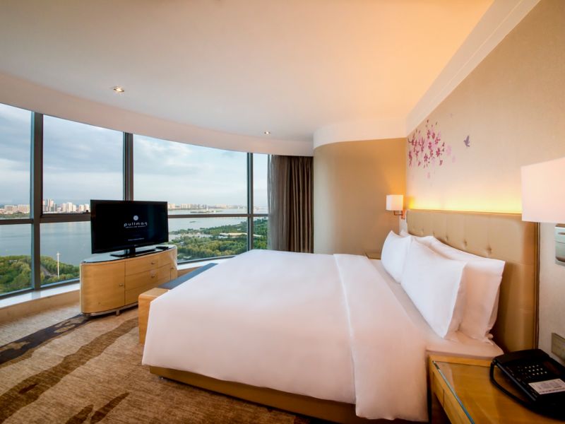 Located on 6th to 17th floor,contemporary rooms up to 40m² with grand river view and bathtub ,Take in the aura of wetland park, Hotel offers 42" LCD TV, 1 set of 2-meter Pullman bed and free wi-fi and high-speed internet access.