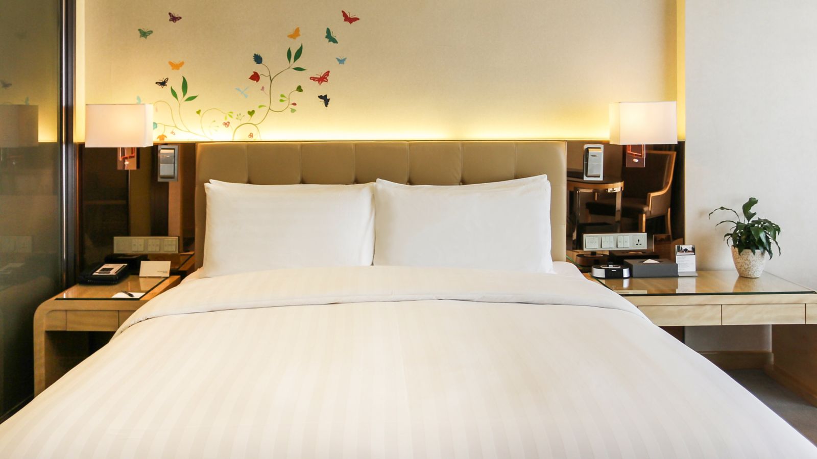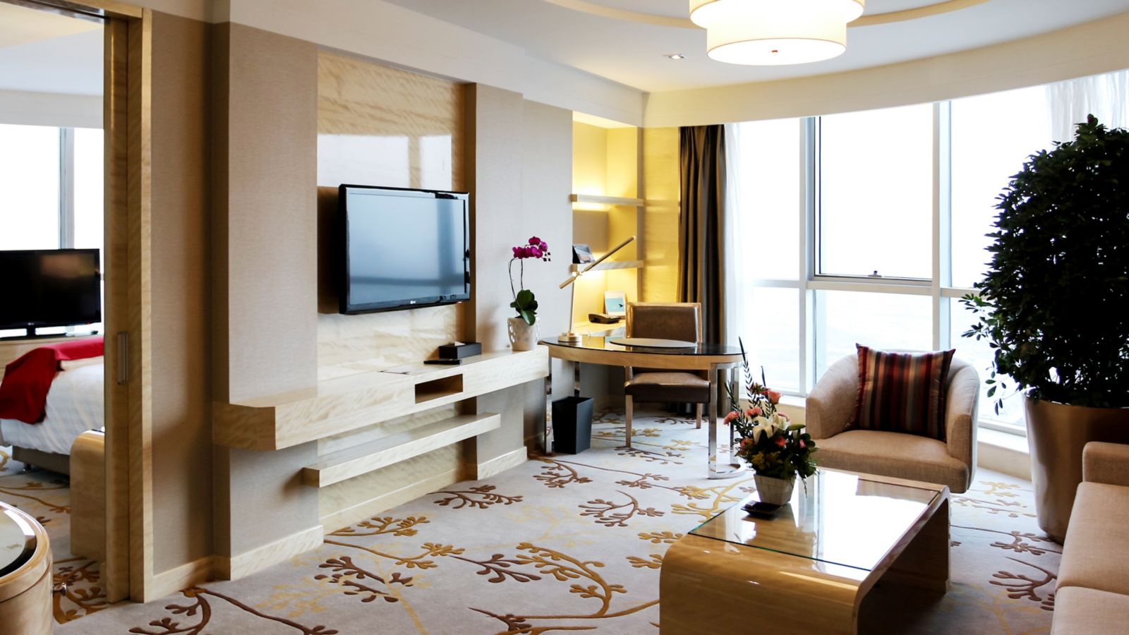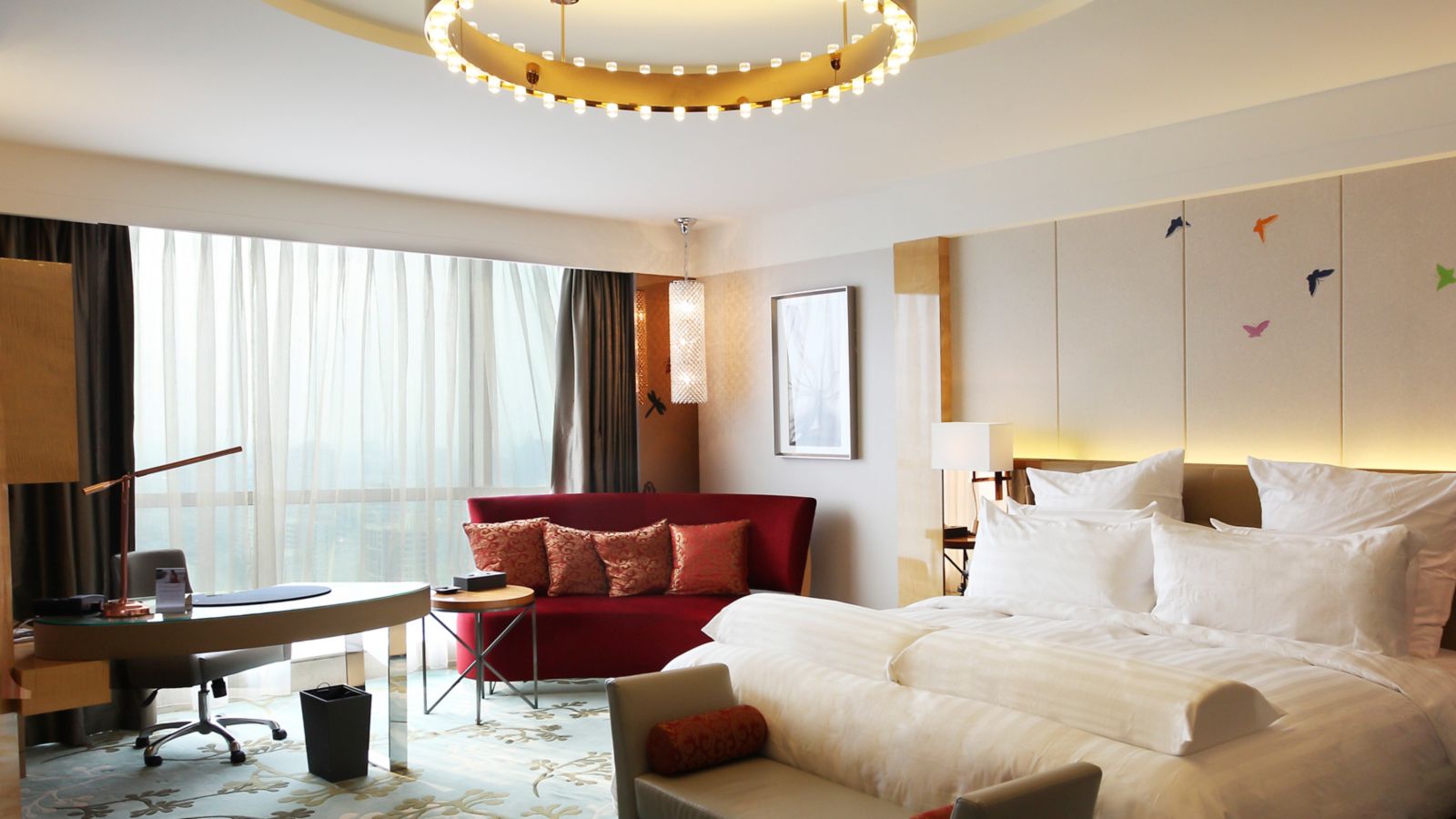 Located on 6th to 17th floor,contemporary rooms up to 40m² with grand river view and bathtub ,Take in the aura of wetland park, Hotel offers 42" LCD TV, 1 set of 2-meter Pullman bed and free wi-fi and high-speed internet access.