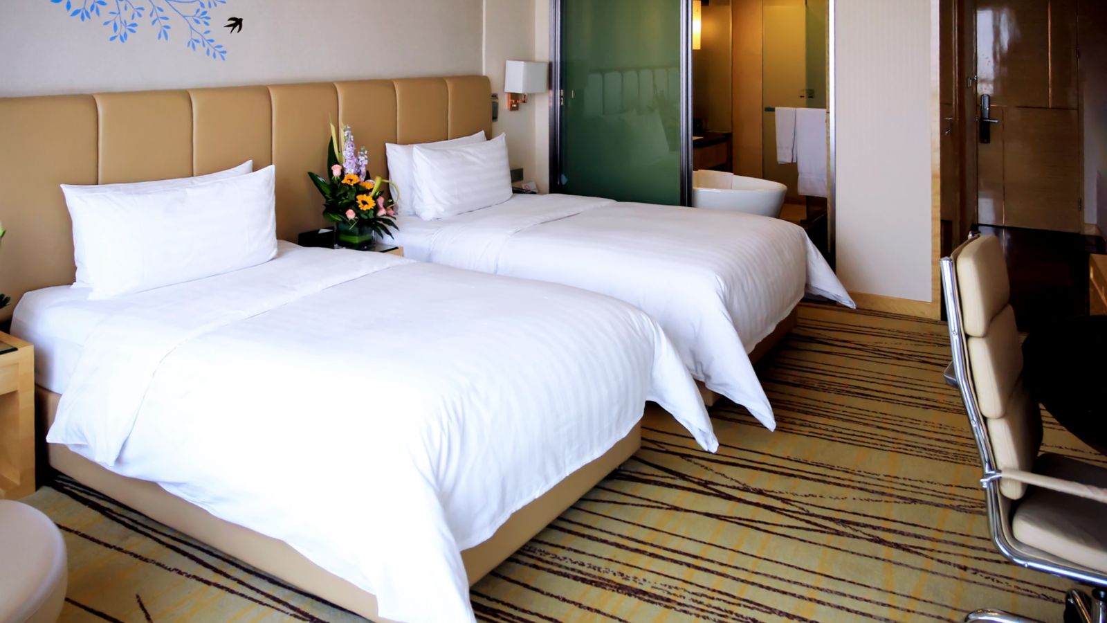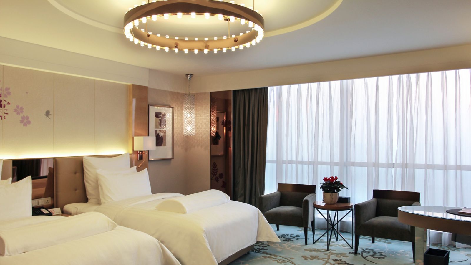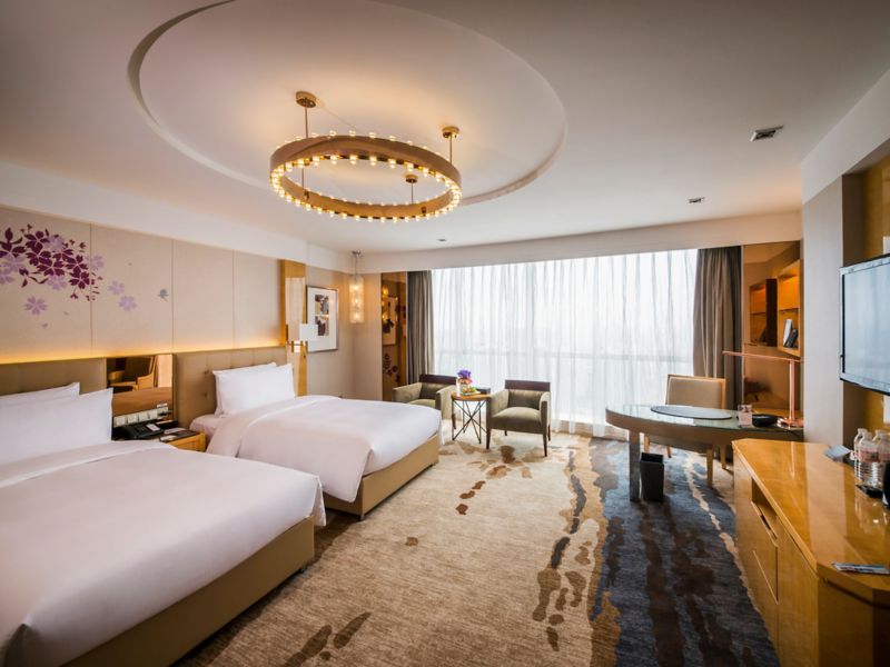 Located on 6th to 17th floor,contemporary rooms up to 40m² with grand river view and bathtub ,Take in the aura of wetland park, Hotel offers 42" LCD TV, 2 set of 1.3-meter Pullman bed and free wi-fi and high-speed internet access.