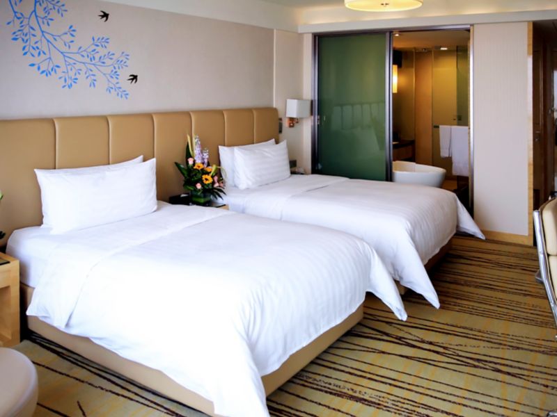 Located on 6th to 17th floor,contemporary rooms up to 40m² with bathtub ,Take in the aura of wetland park, Hotel offers 42" LCD TV, 2 set of 1.3-meter Pullman bed and free wi-fi and high-speed internet access.