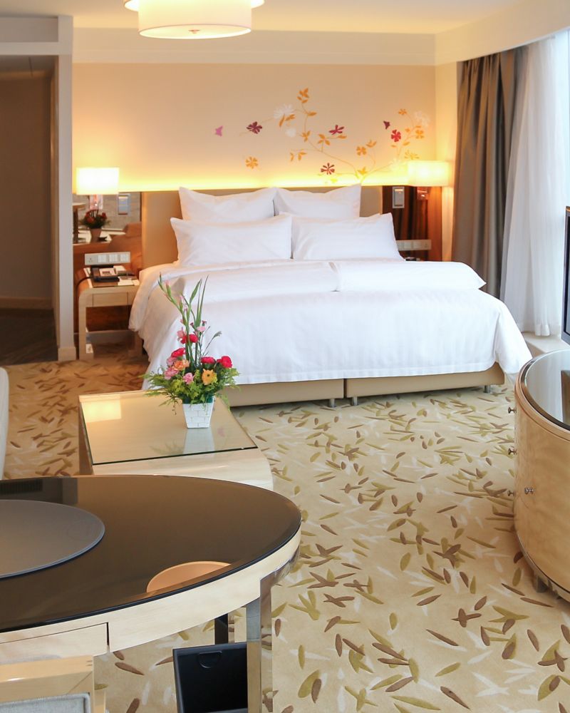 Located on 6th to 17th floor,contemporary rooms up to 40m² with grand river view and bathtub ,Take in the aura of wetland park, Hotel offers 42" LCD TV, 1 set of 2-meter Pullman bed and free wi-fi and high-speed internet access.