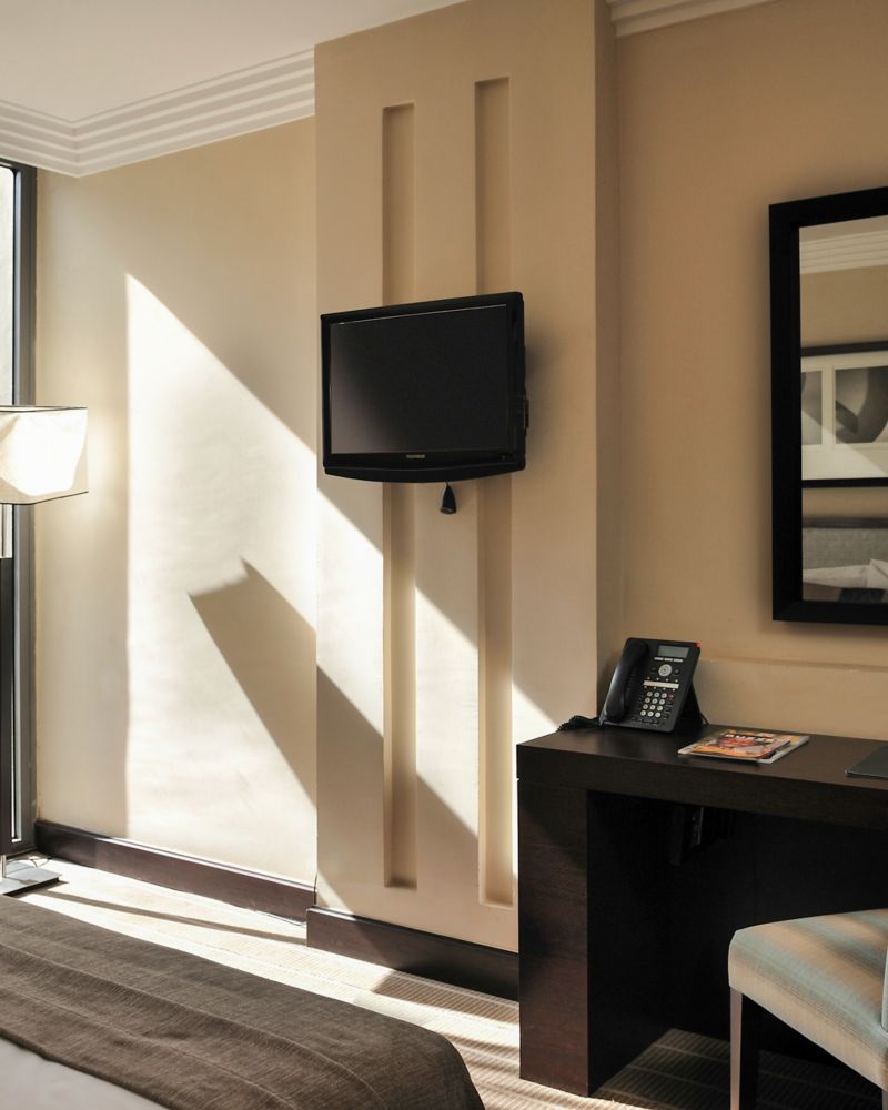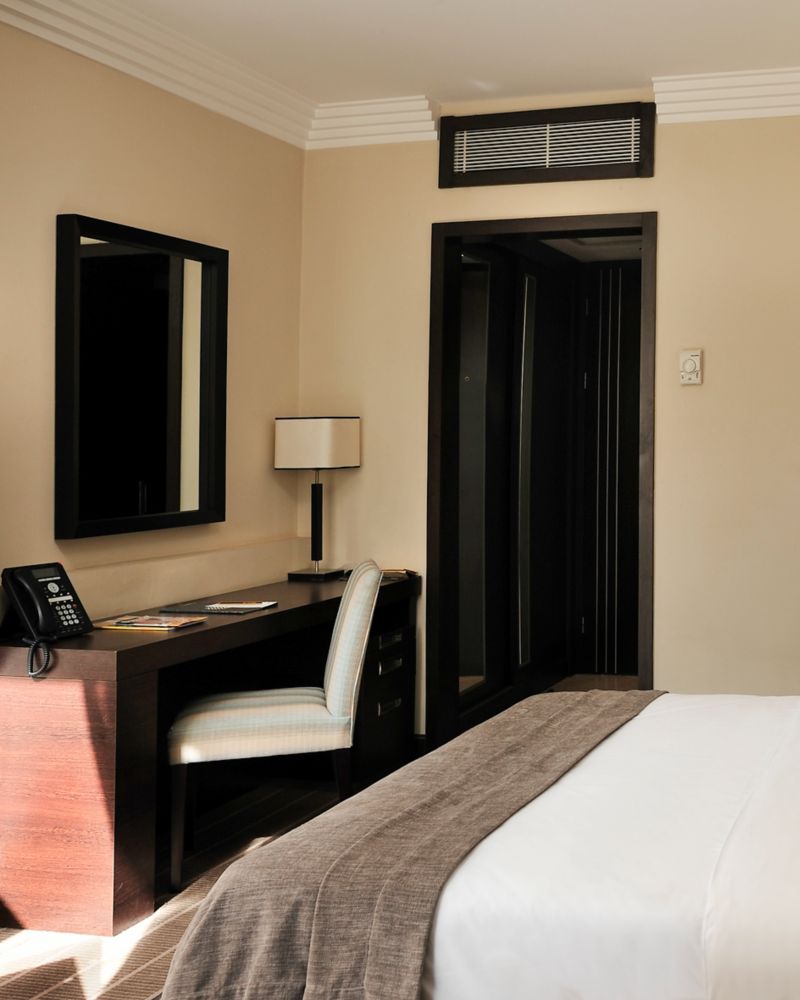 269 sq. ft. (25 m2), on a high floor, office space, free tea and coffee making facilities, mini fridge, armchair, bathroom with shower, hair dryer, safe, air conditioning and fan, satellite TV and high-speed Internet