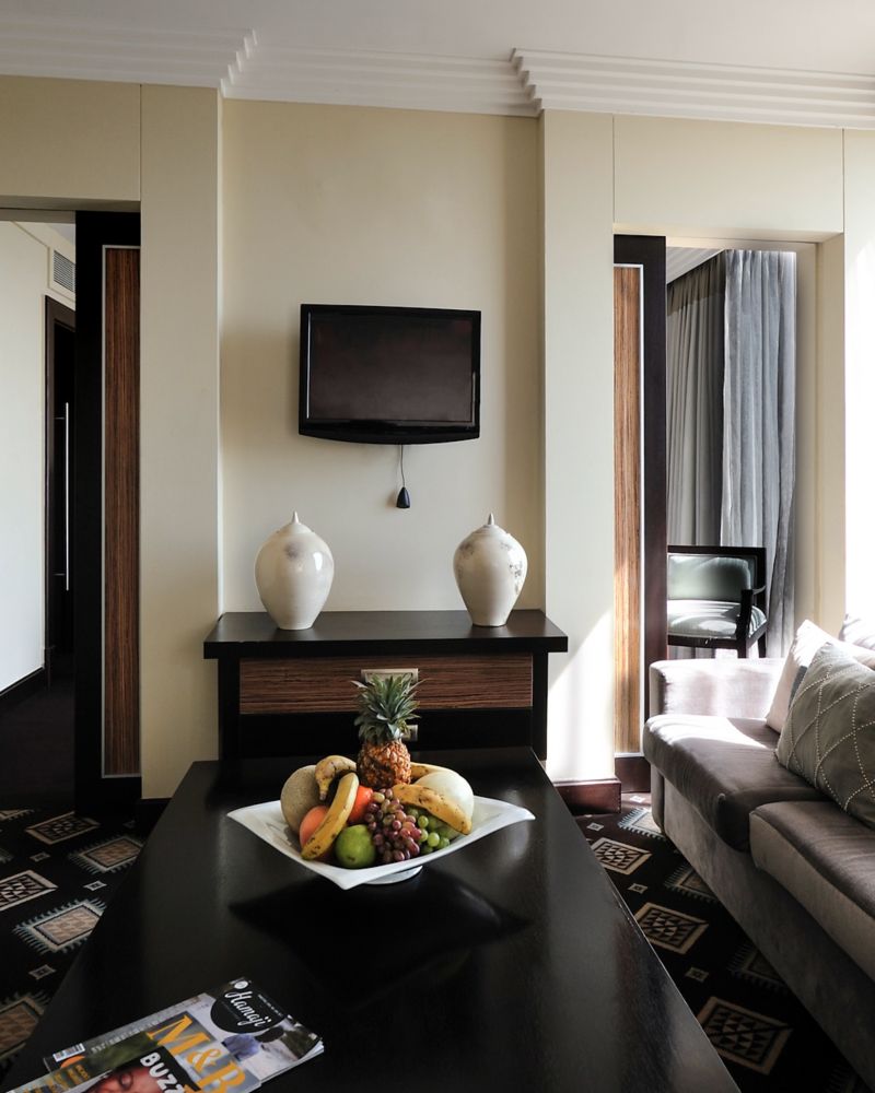 269 sq. ft. (25 m2), on a high floor, office space, free tea and coffee making facilities, mini fridge, armchair, bathroom with shower, hair dryer, safe, air conditioning and fan, satellite TV and high-speed Internet