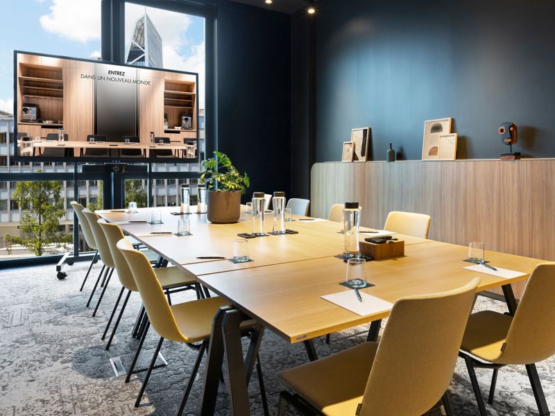 In the heart of the vibrant Bercy district, the trendy Pullman Paris Centre-Bercy, designed by Tom Dixon, invites you to live every moment to the fullest. Enjoy unique services: a trendy restaurant and bar, an ephemeral terrace, co-working spaces, an art gallery, a wellness area, a private cinema by MK2 and 26 hybrid meeting rooms.