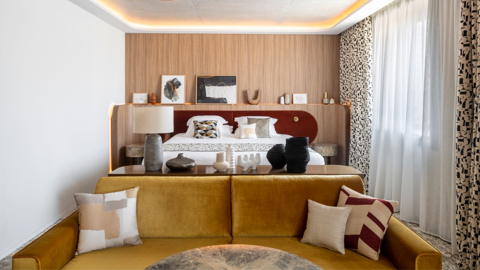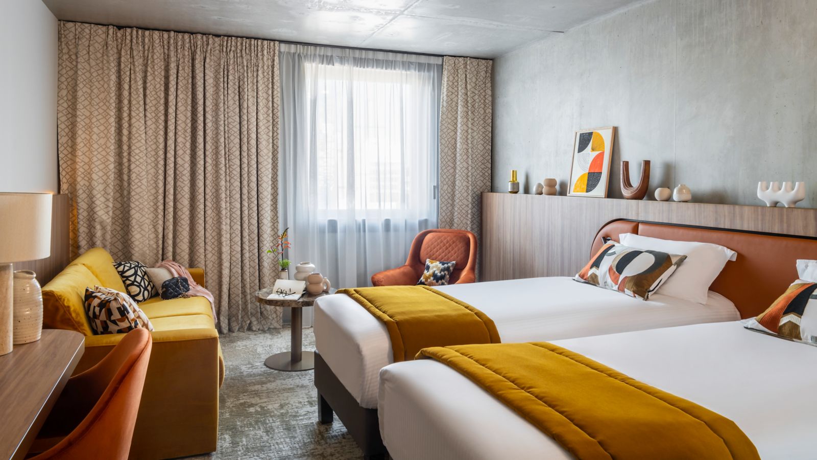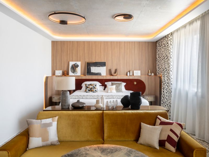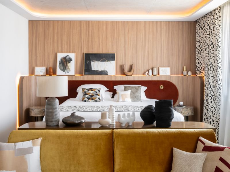 Discover elegant comfort with our stylish and spacious rooms, featuring crafted wood and raw materials, with warm organic notes for an authentic sense of peace.