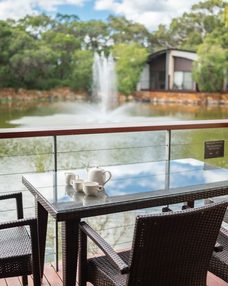 Located lakeside and adjacent to Bunker Bay Beach access, the villa offers a private deck over the lake. Timber floorboards and limestone feature walls, marble en-suite with deep soaking bathtub and separate shower plus microwave and dishwasher.