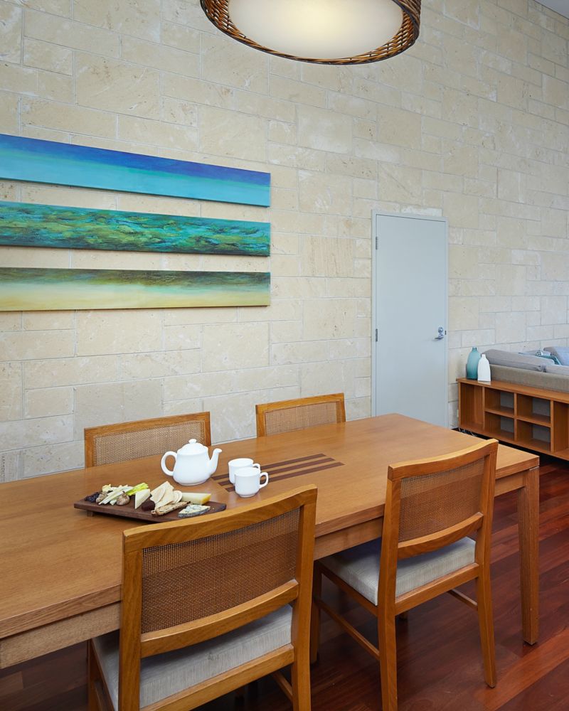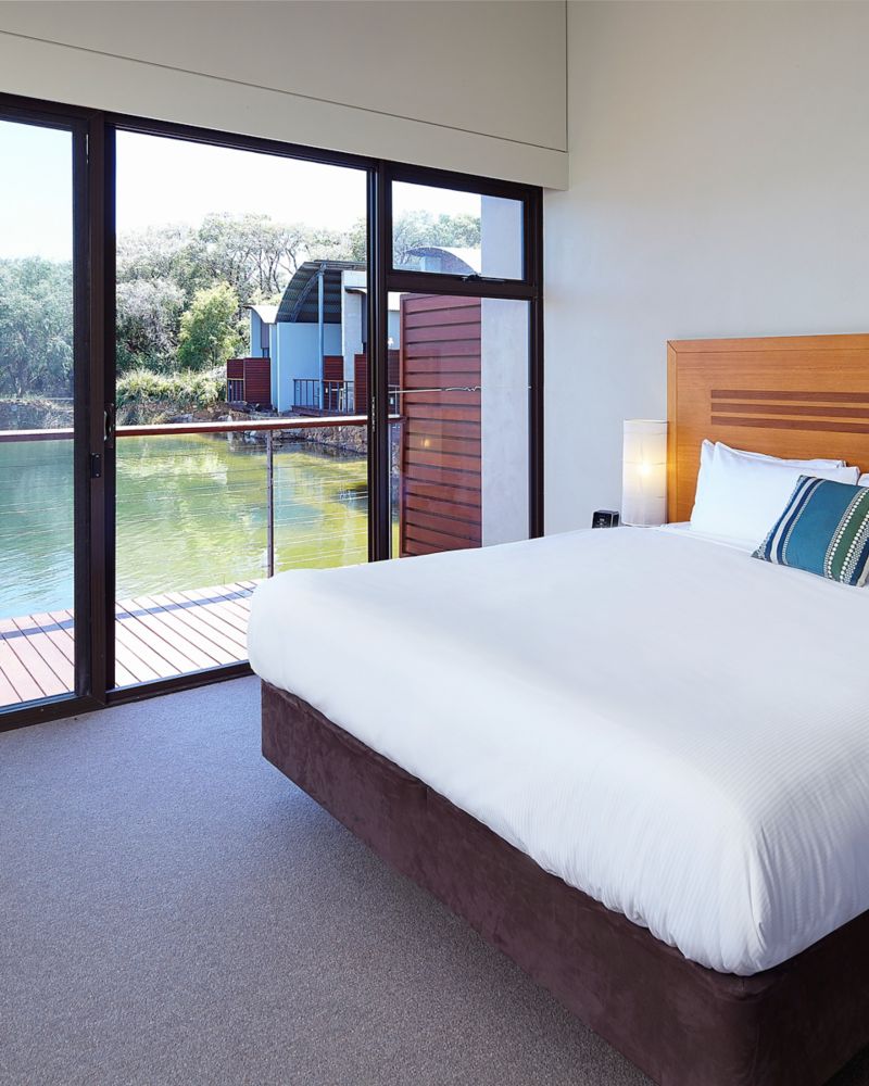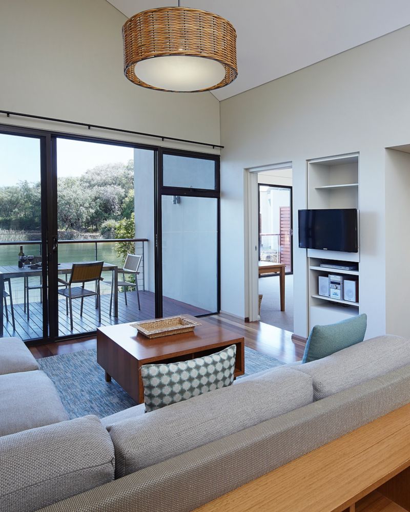 Spacious open plan villa with private terrace overlooking tranquil native gardens. Featuring timber floorboards and limestone feature walls, marble en-suite with deep soaking bathtub and separate rain shower plus cooktop, microwave and dishwasher.